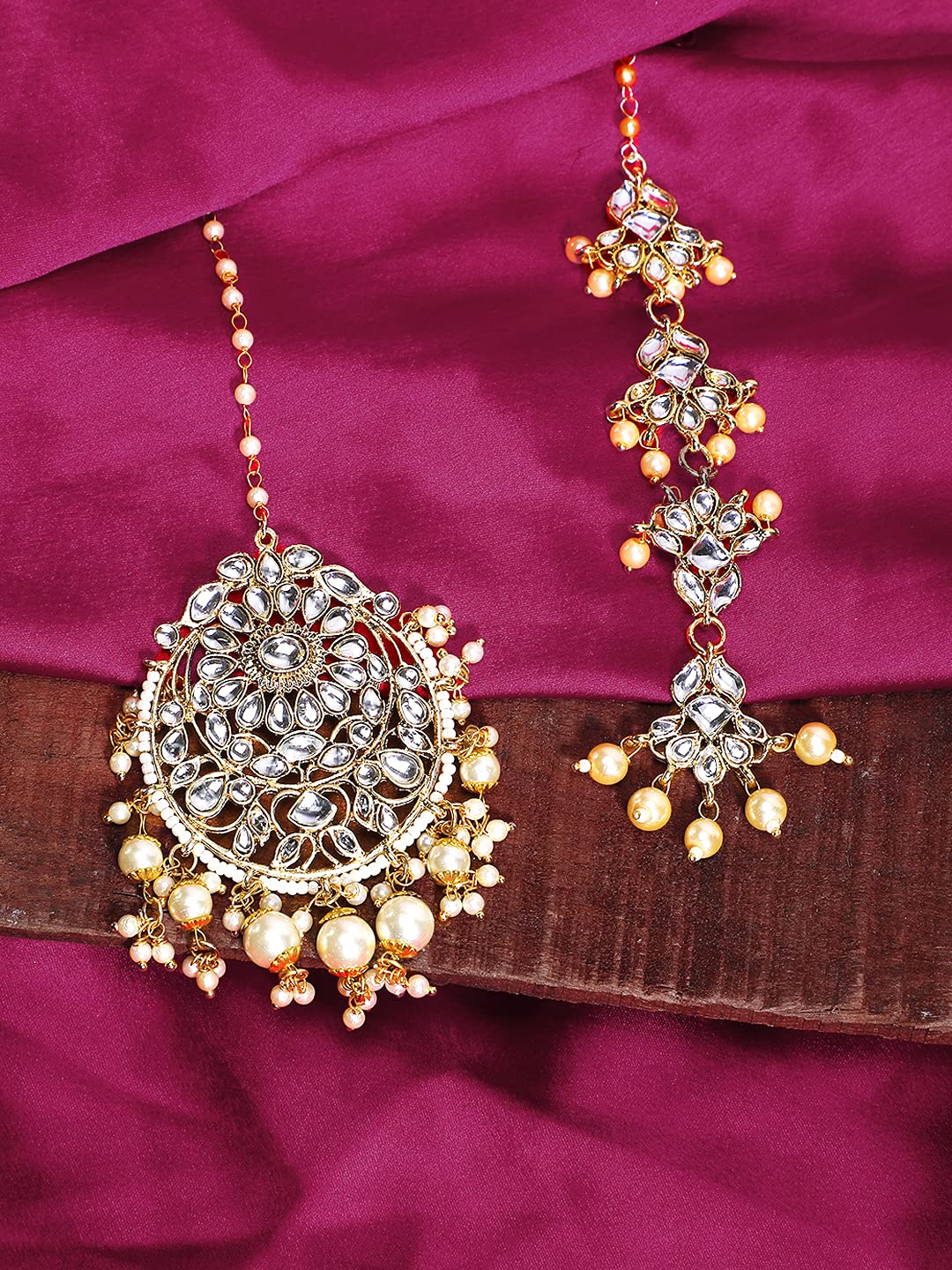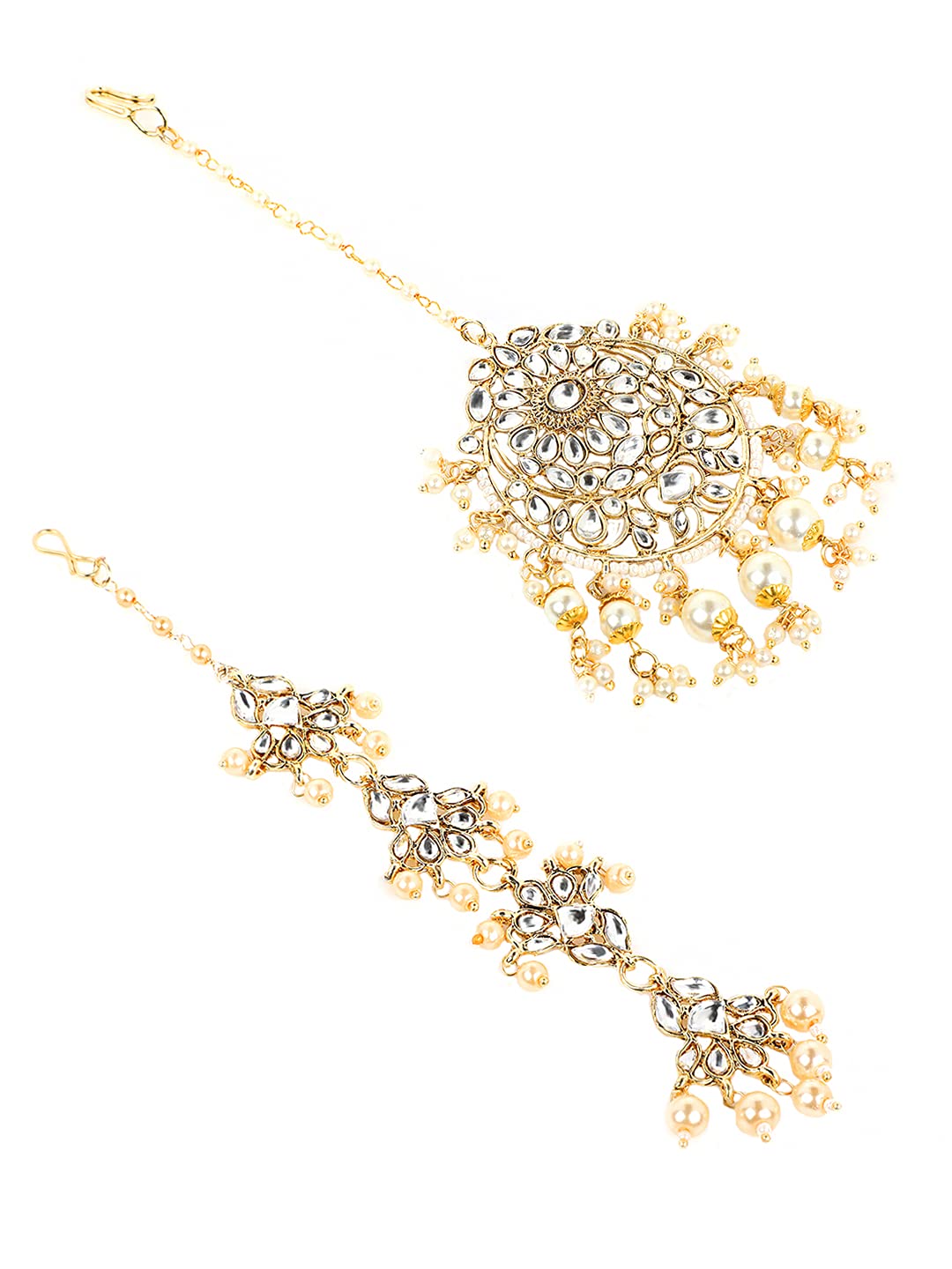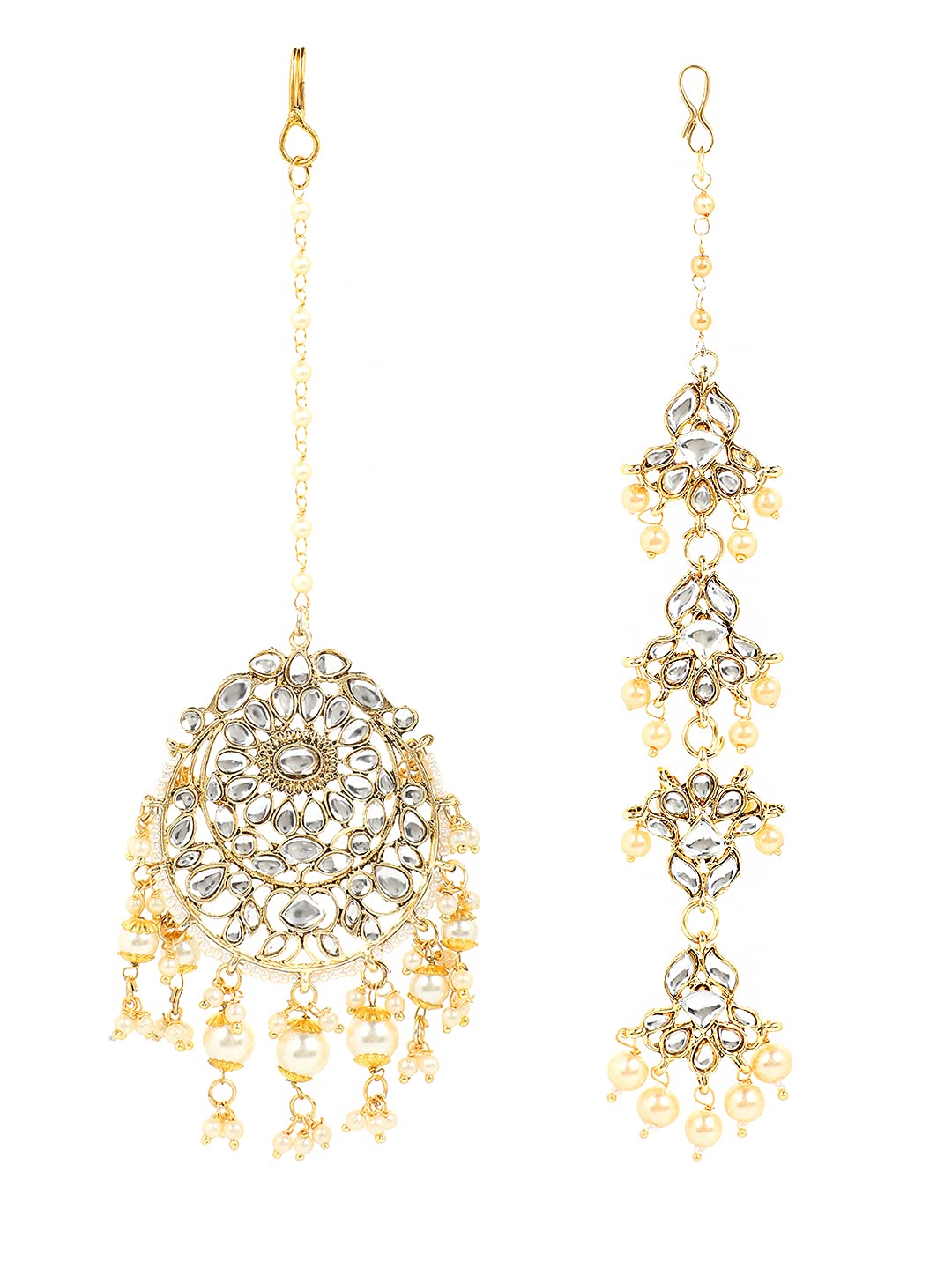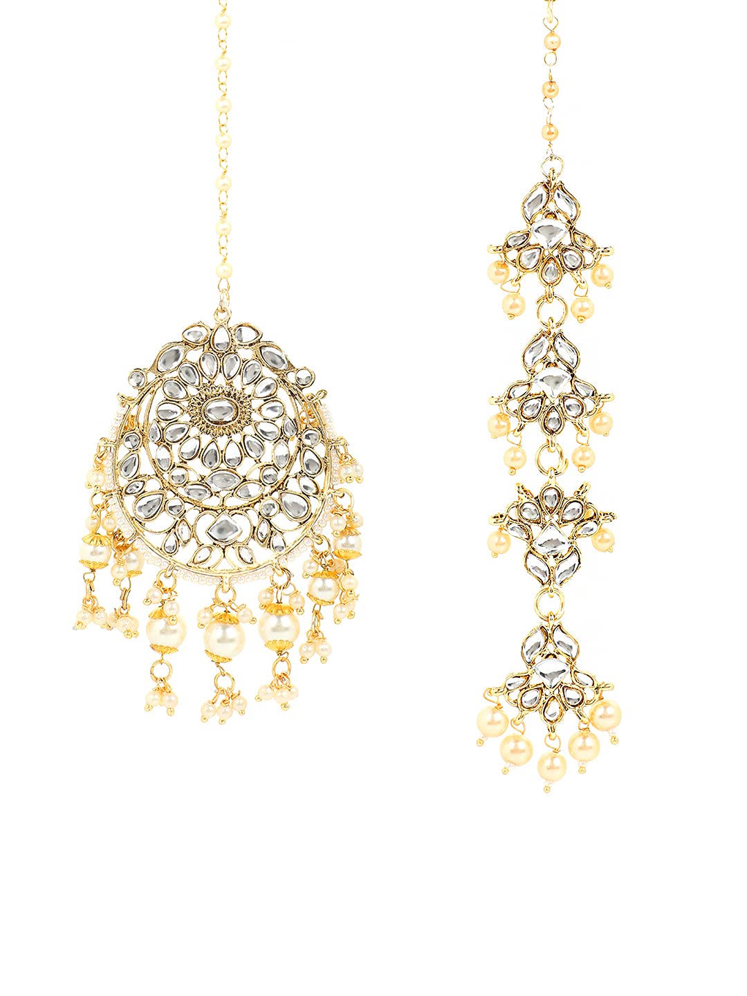 Yellow Chimes Combo of Traditional Gold Plated Studded Kundan Beads Design Ethnic Maang Tikka for Women and Girls (Design 5)