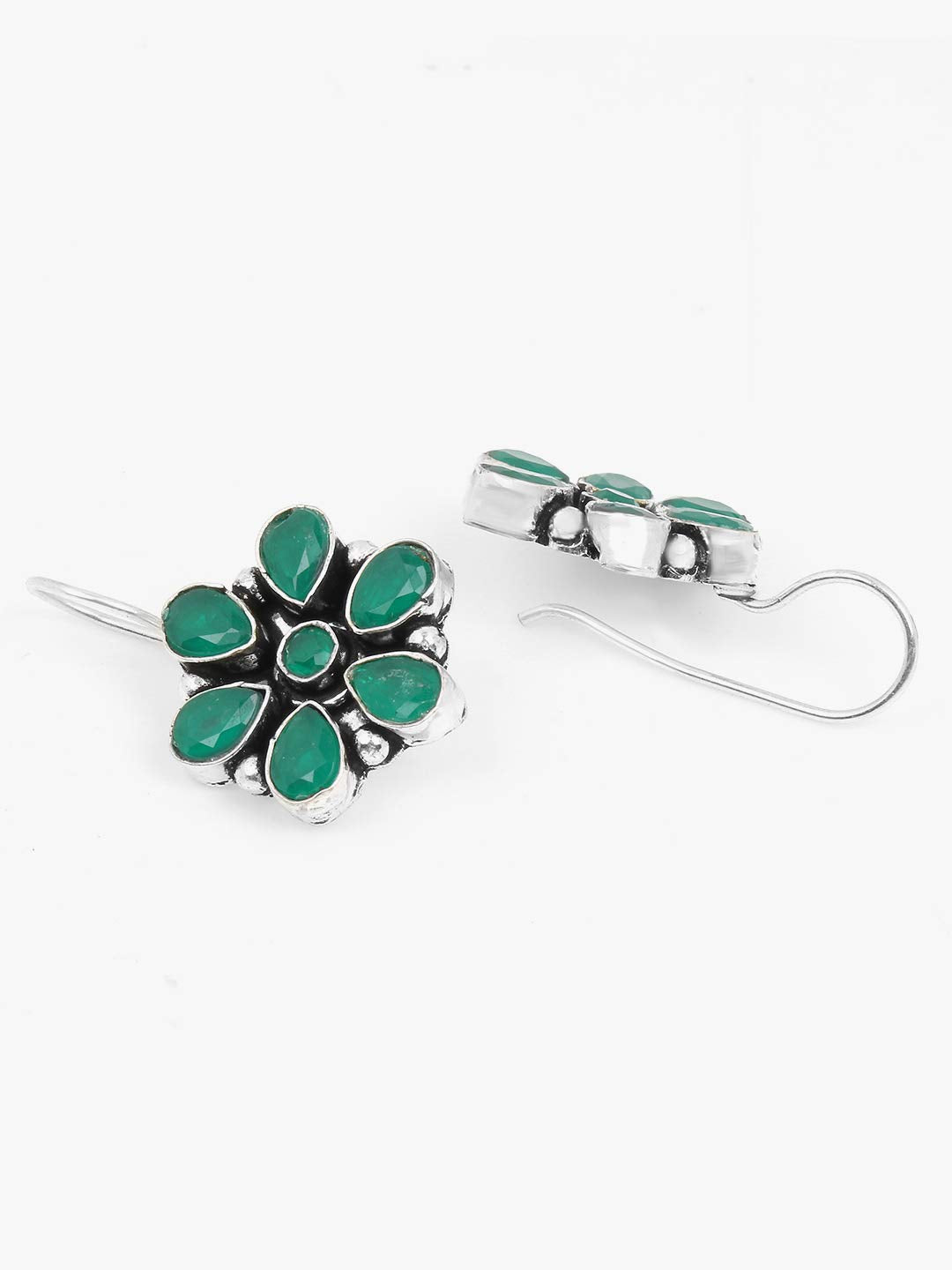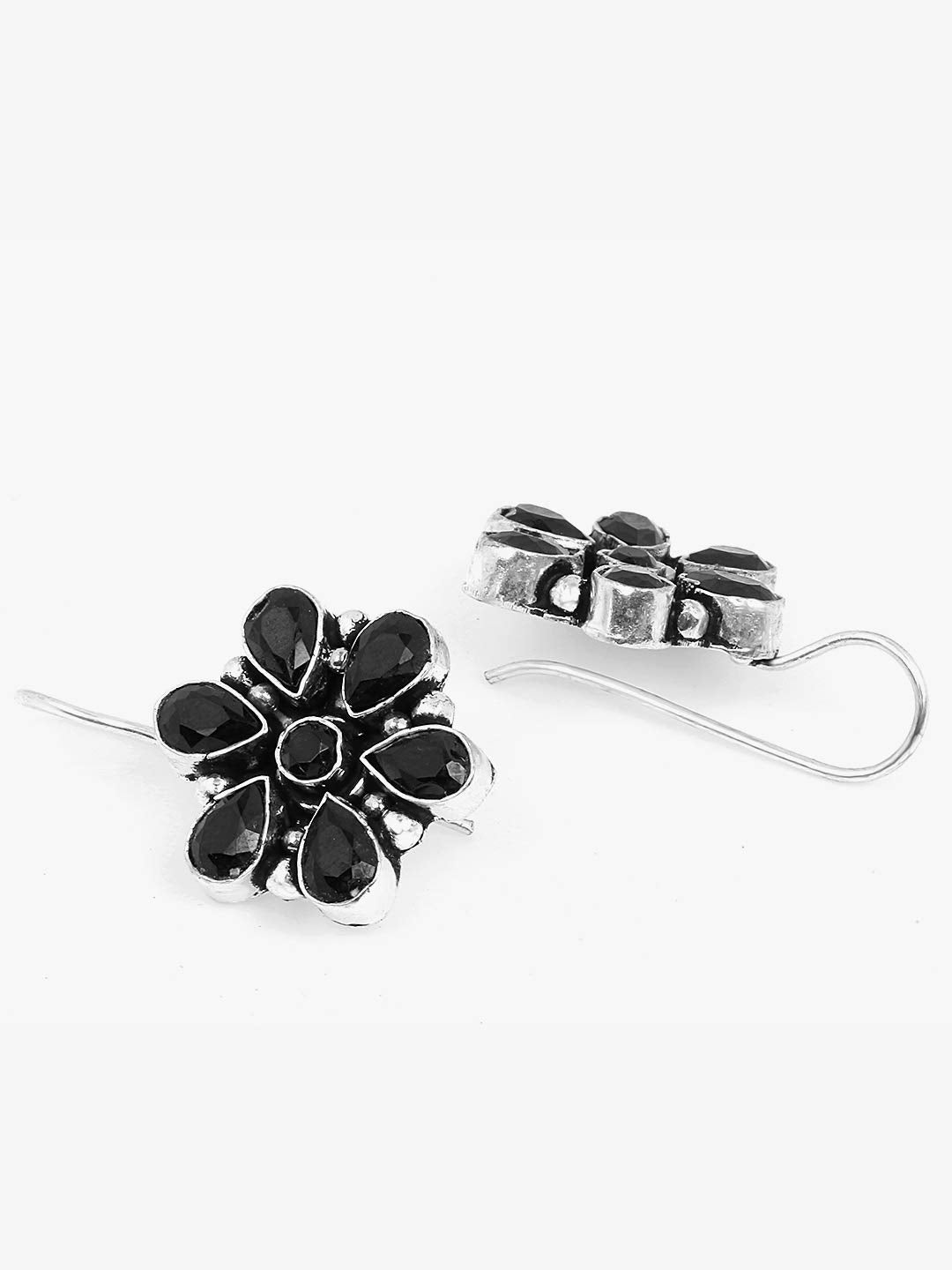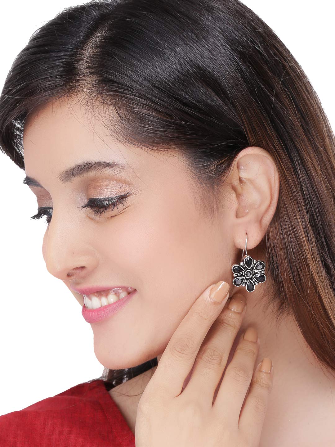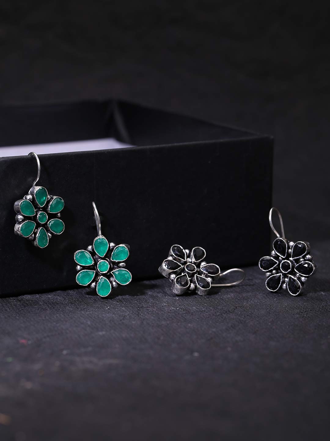 - Combo of Two Pair Stylish German Silver Oxidized Designer Floral Studded Stone Quality Collection Earrings- An Eternal Classical Design. These Vintage earrings will complement any Occasion Ethnic Wear/ Daily / College / Party Wear.