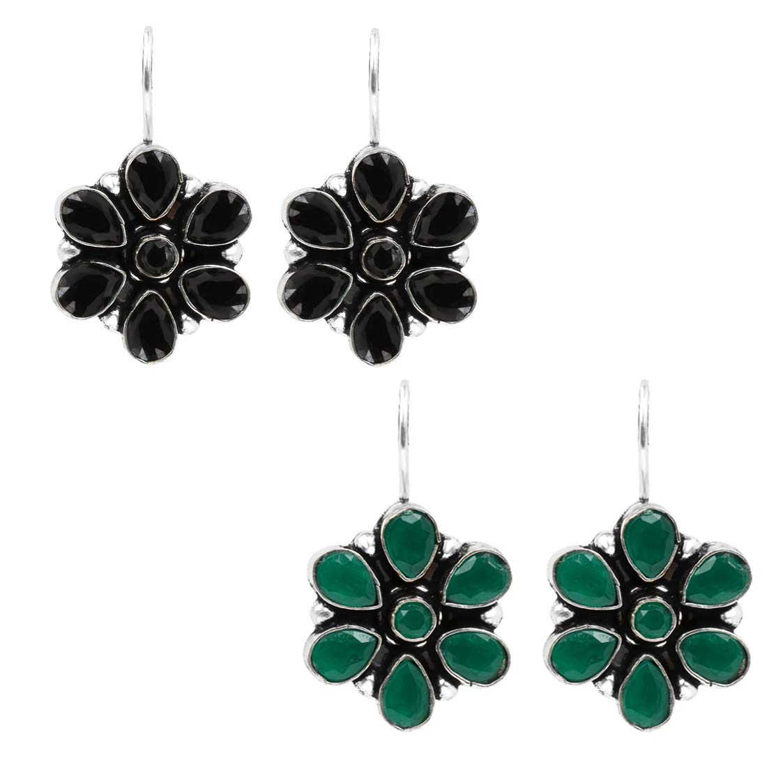 Combo of Two Pair German Silver Oxidized Handmand Floral charm Studded Stone Drop Earrings Women and Girls