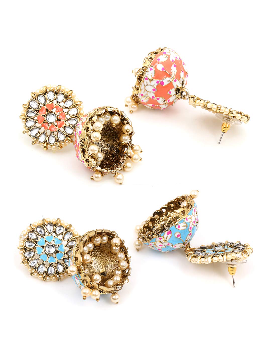 Combo of Two Pair Handcrafted Gold toned Traditional Meenakari Jhumka/Jhumki Earrings for Women and Girls