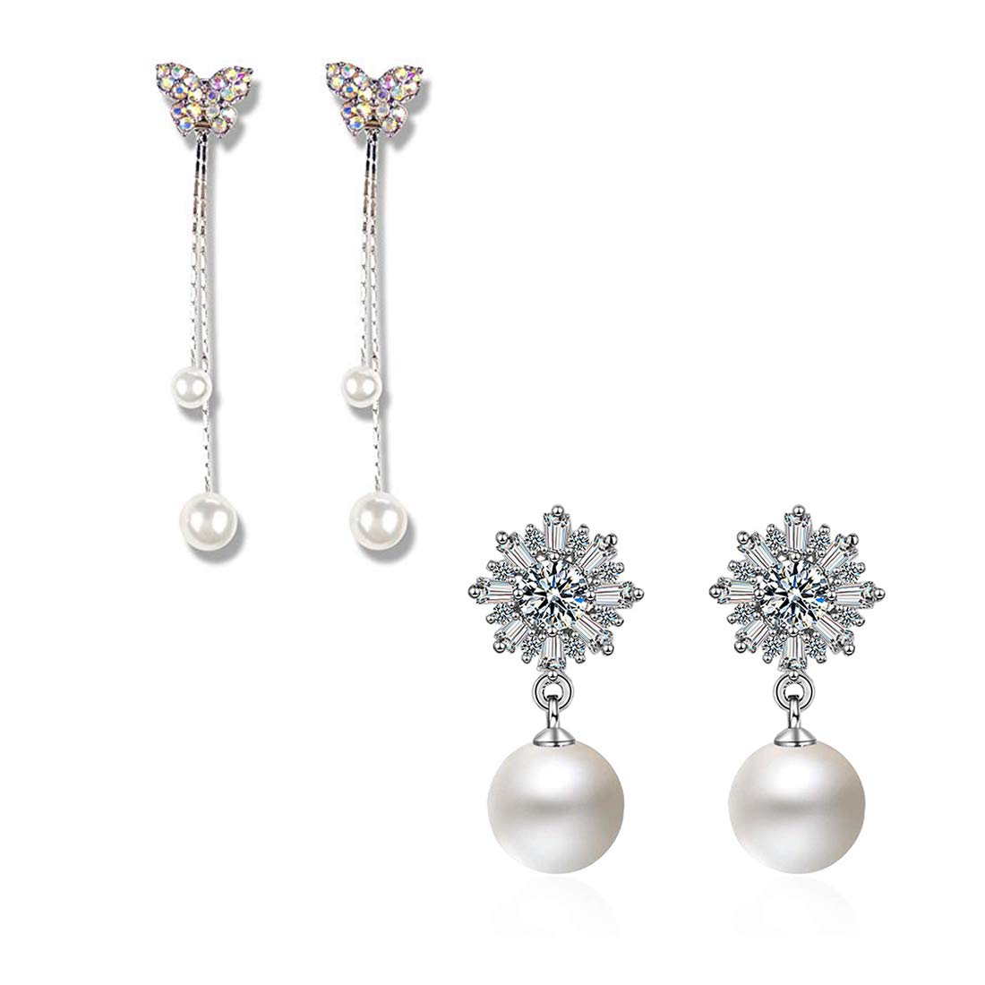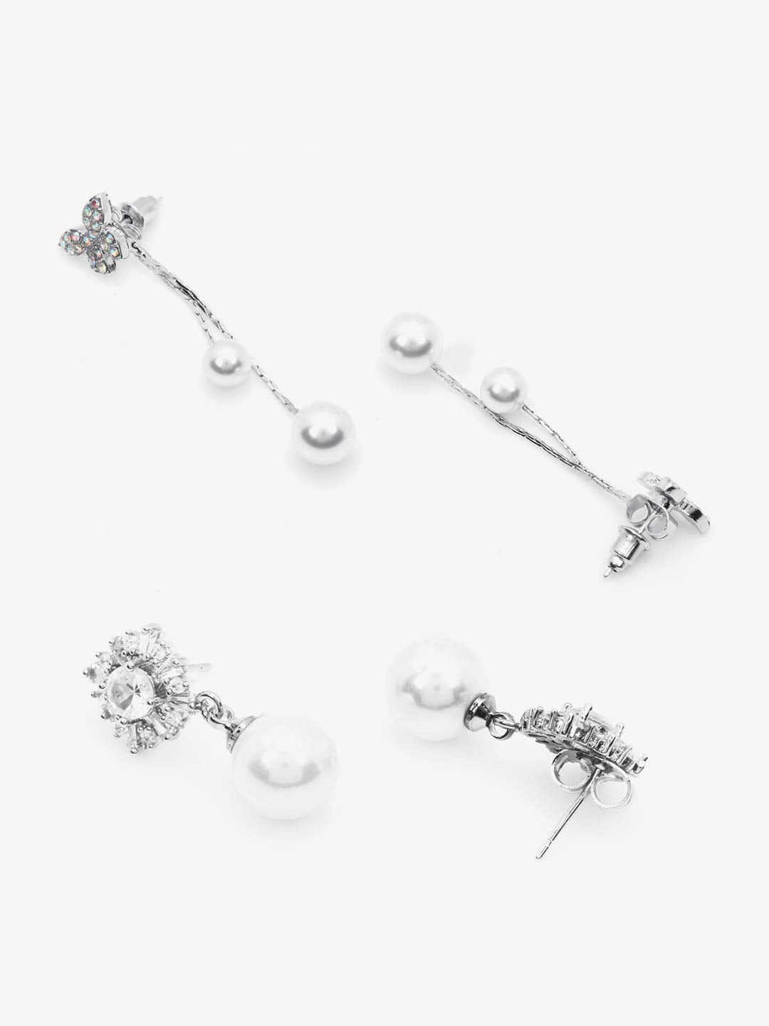 - Evergreen Sparkling High Quality Combo of Two Pairs Designer Crystal Flower Pearl Butterfly Drop Earrings. Stylish Latest Trend Casual / Leisure / Party Wear Earrings for Women and Girls. These Ear Rings can be worn with all kind of Outfits. Unique Designs to must add in your Hand picked Jewellery Selection.