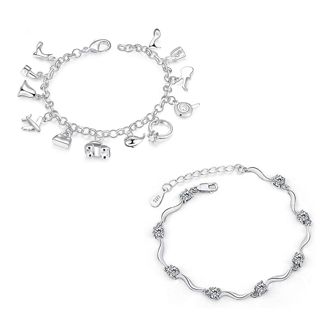 Combo of Two PCs Silver Plated Crystal Jolly Charms Bracelet for Girls and Women