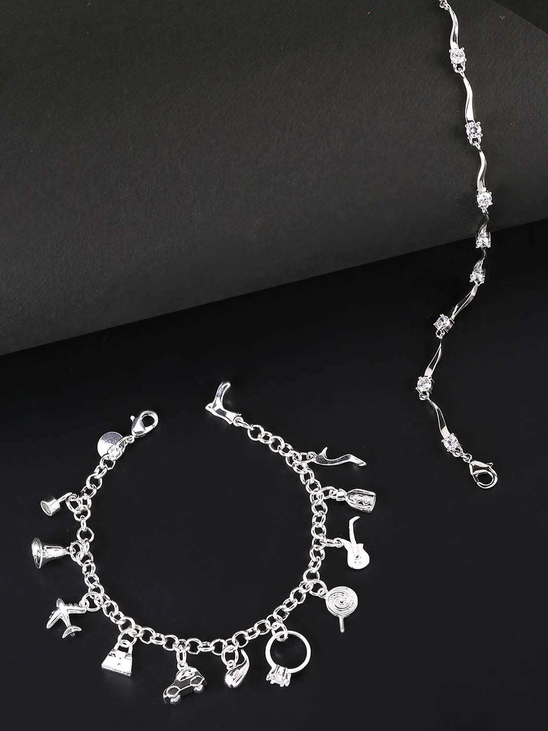 Yellow Chimes Combo of Two PCs Silver Plated Crystal Jolly Charms Bracelet for Girls and Women