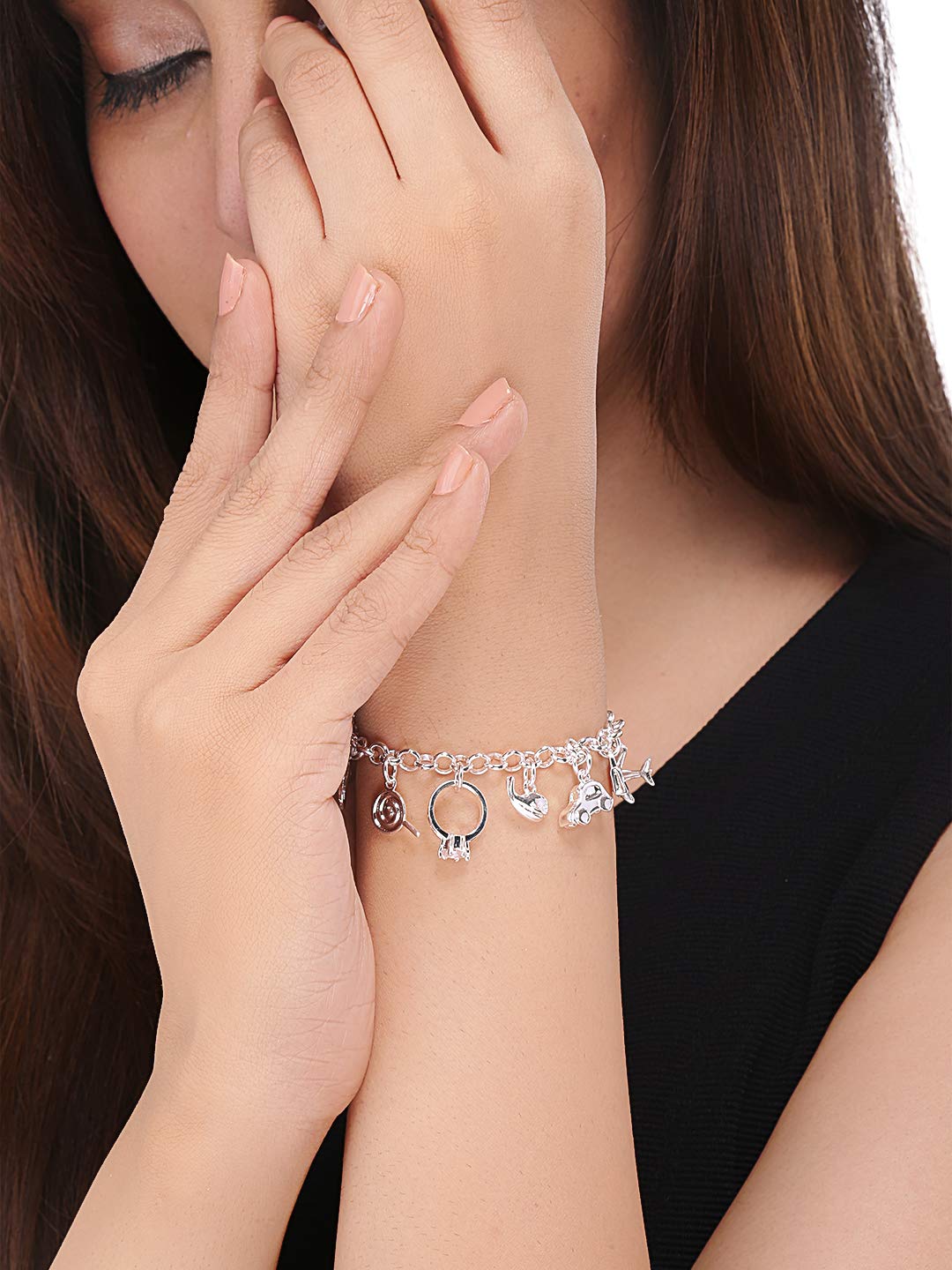 - Beautiful White Crystal and Jolly Charms Chain Bracelates Combo-A Jewellery to Treasure always - not Only for the woman who wears it, but in then Eyes of Beholder! For the Fshionable Casual looks