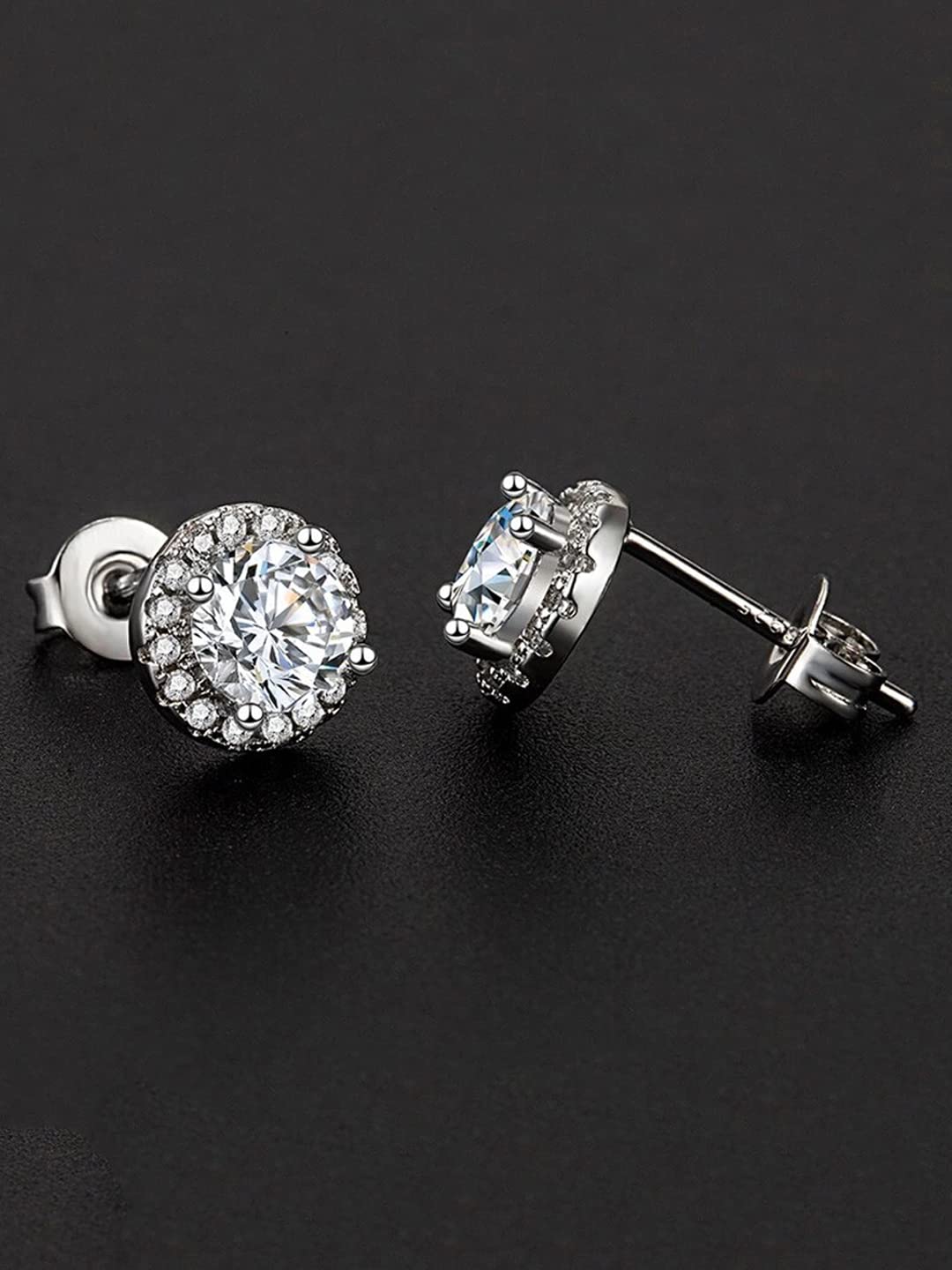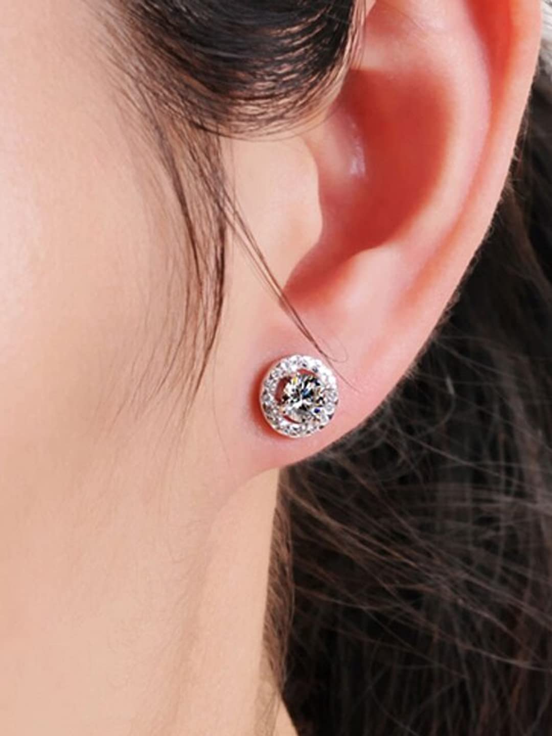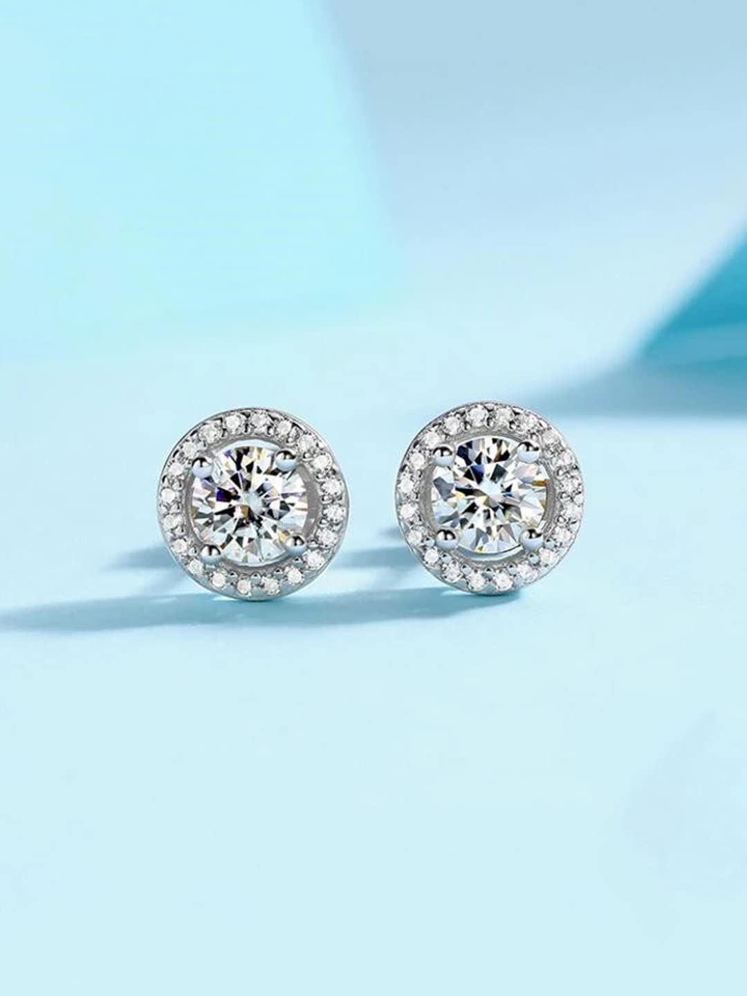 Crystal Earrings for Women Silver Plated Crystal Studded Circle Studs Earrings For Women and Girls