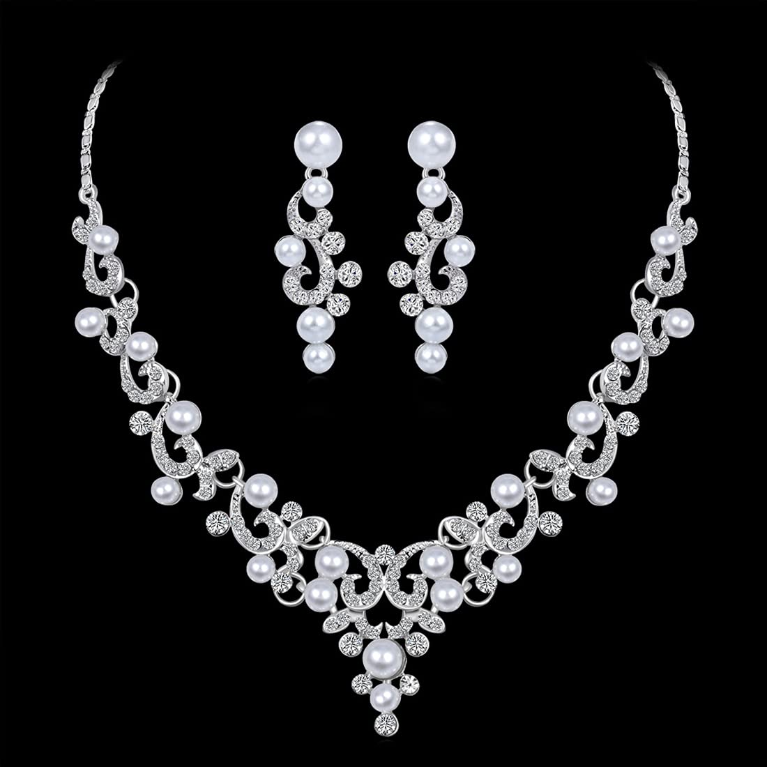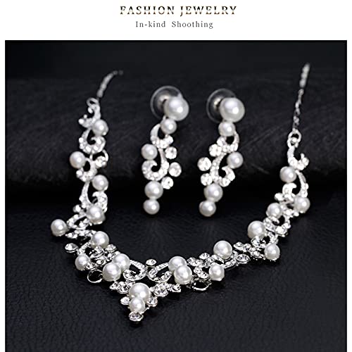 Jewellery Set for Women and Girls Fashion White Crystal Jewellery Set for Women | Silver Toned Pearl Choker Necklace Set | Birthday Gift for Girls & Women Anniversary Gift for Wife