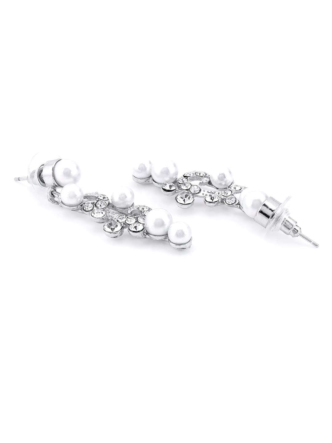 Yellow Chimes Jewellery Set for Women and Girls Fashion White Crystal Jewellery Set for Women | Silver Toned Pearl Choker Necklace Set | Birthday Gift for Girls & Women Anniversary Gift for Wife