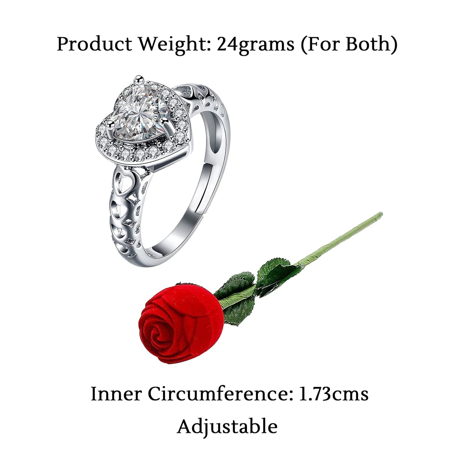 Crystal Royal Heart Adjustable Ring in Red Velvet Rose Ring Box for Women and Girls