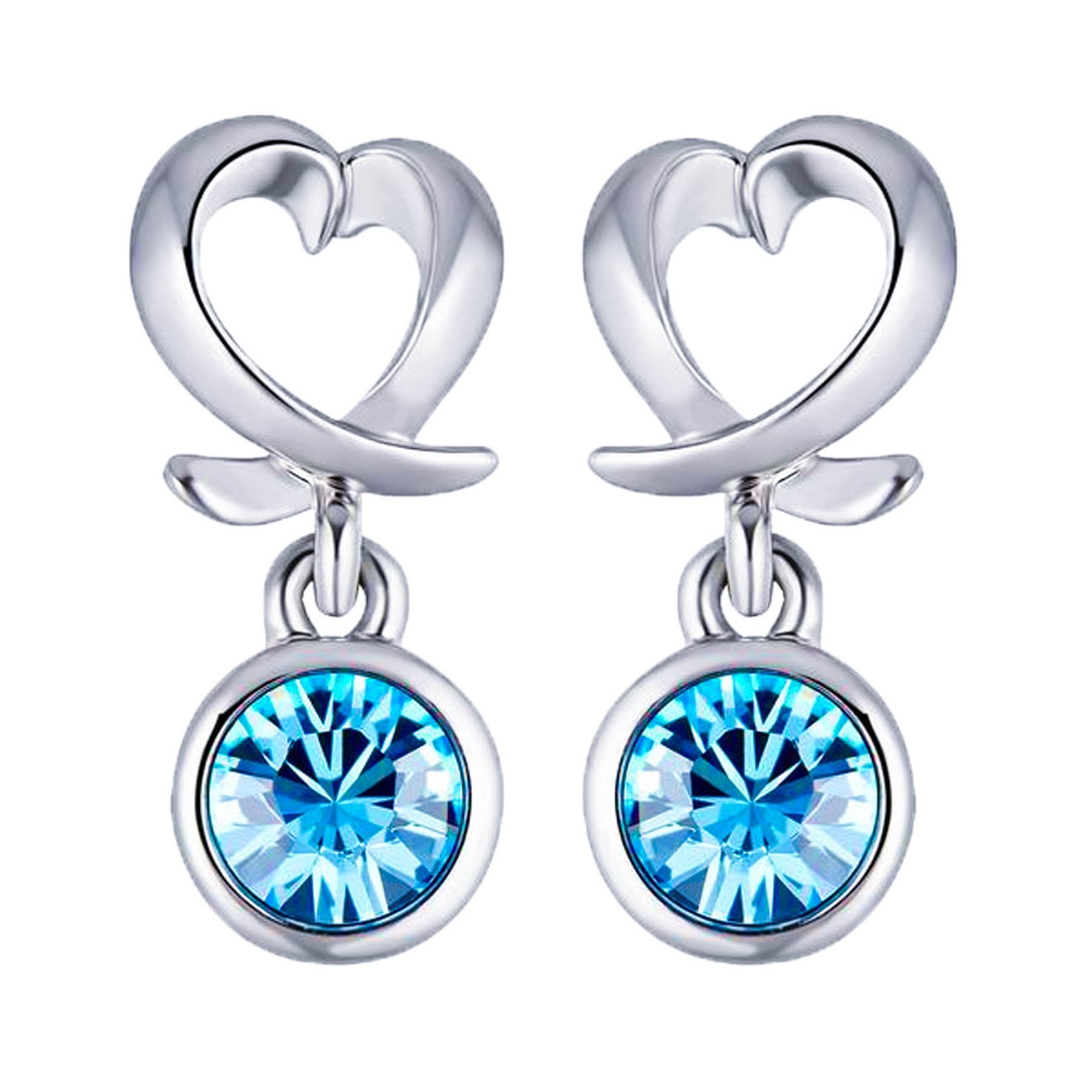 Yellow Chimes A5 High Grade Crystal Designer Cross Hearts Blue Earrings for Women and Girls
