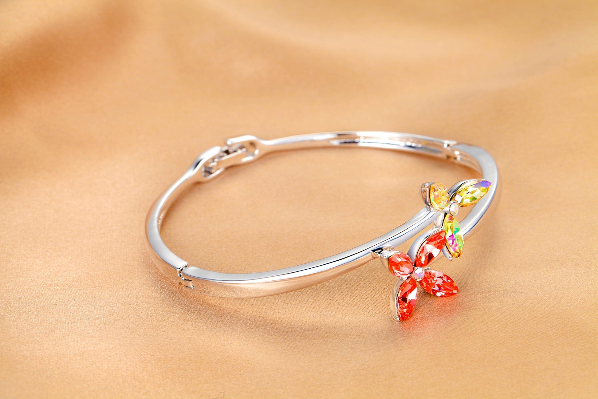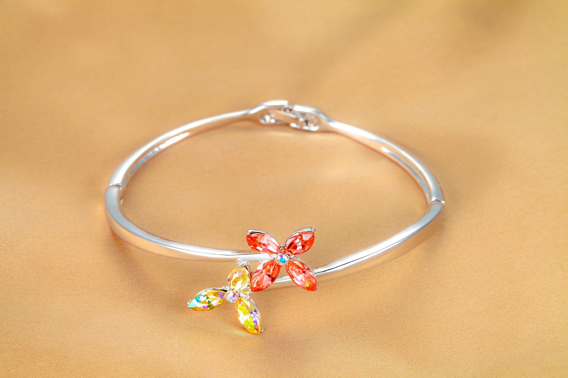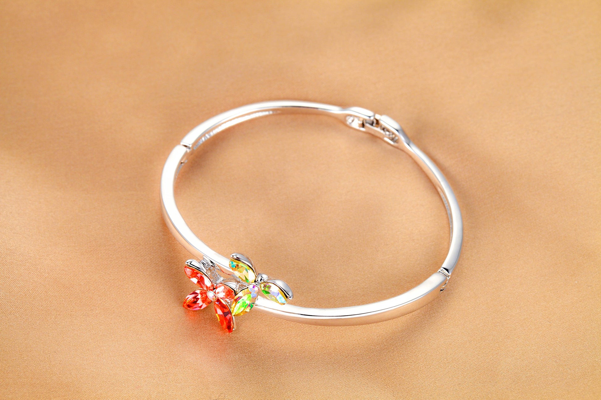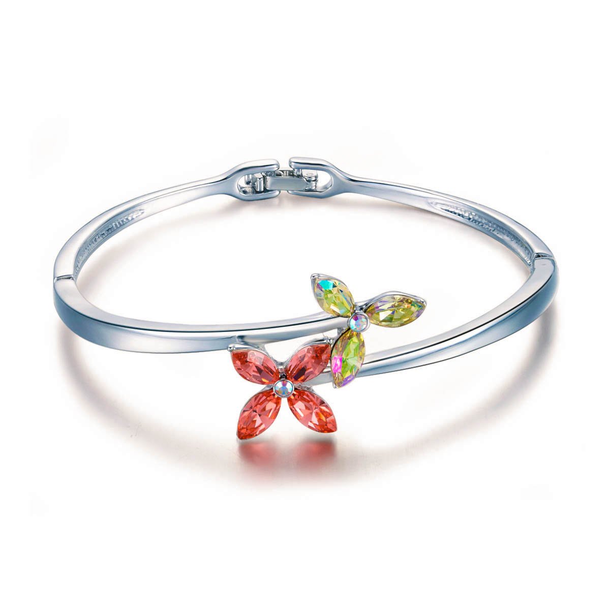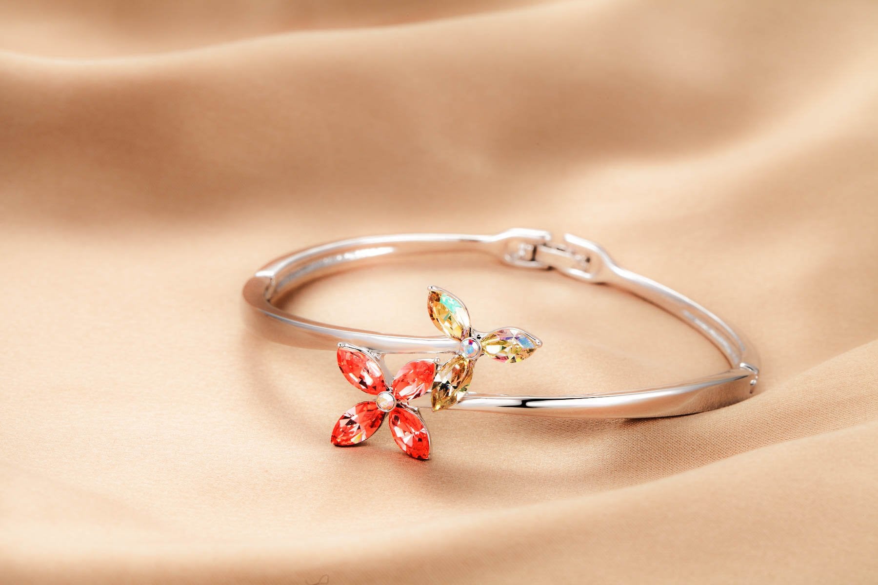 Crystals from Swarovski Multicolor Crystal Flower Designer Bracelet for Women and Girls