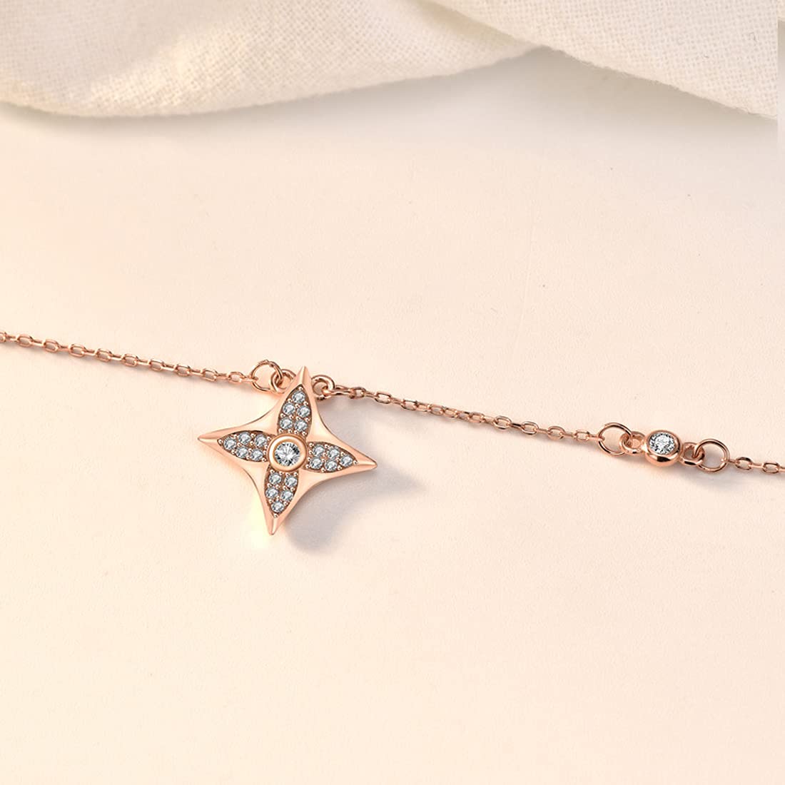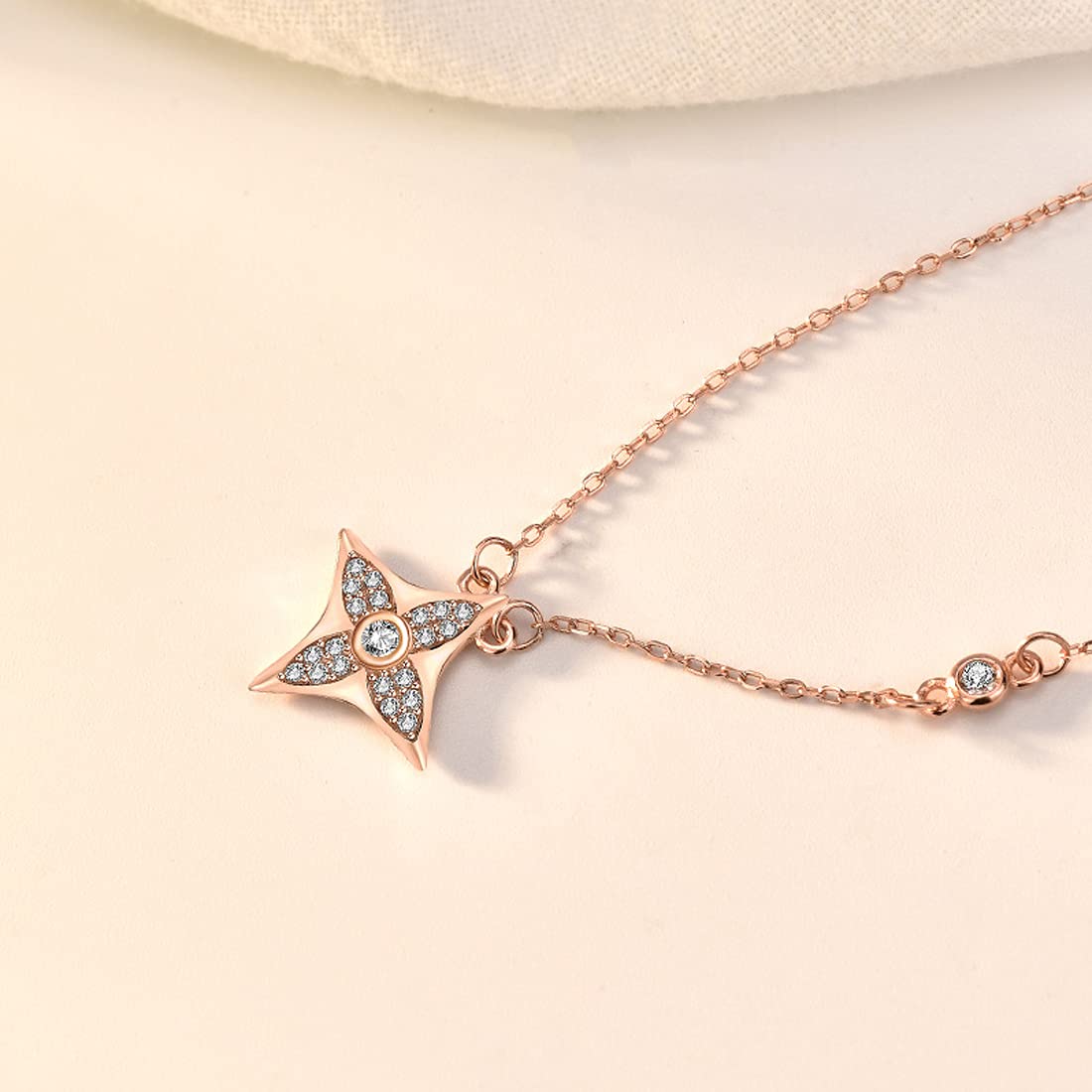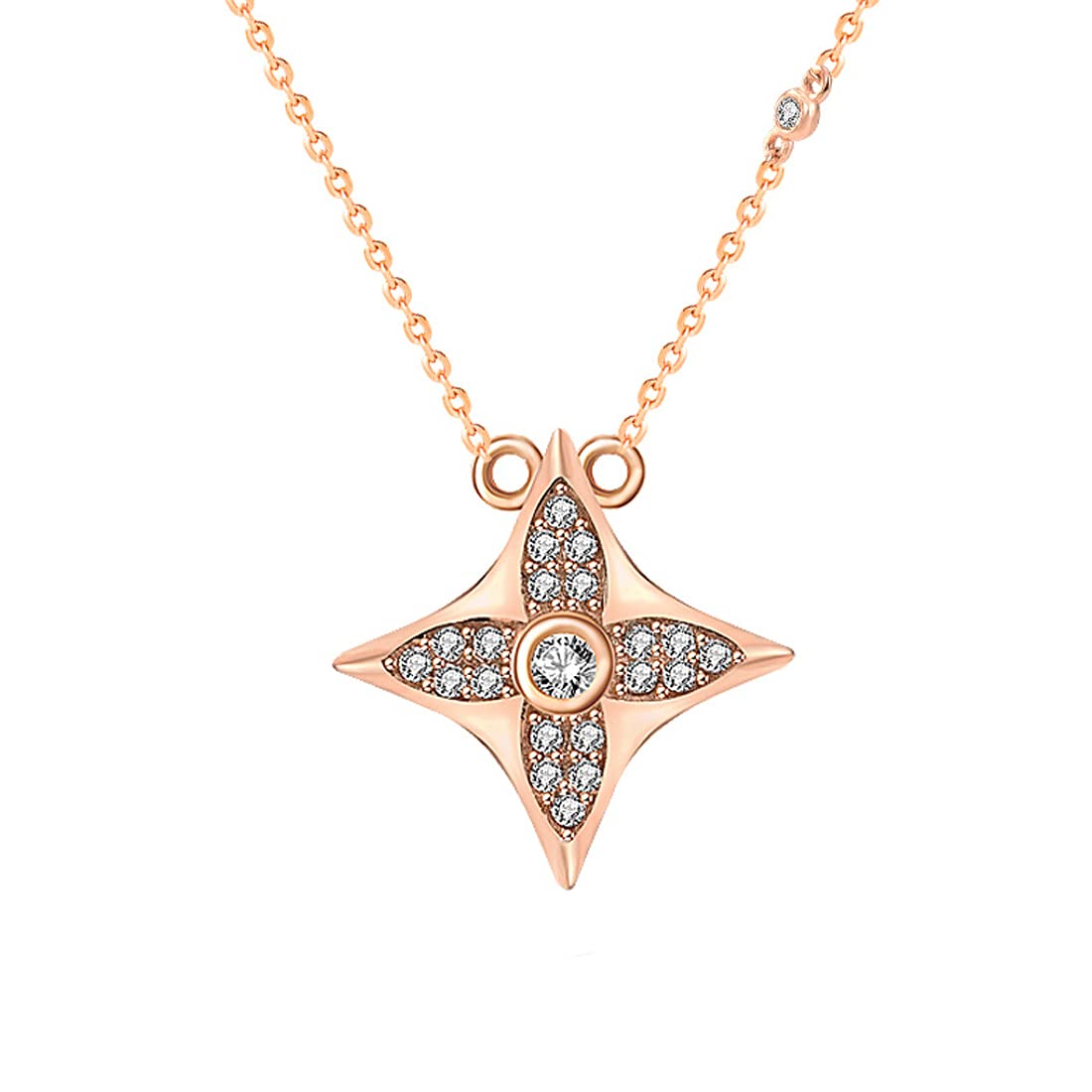 Cubic Zirconia Crystal Design 925 Sterling Silver Hallmark and Certified Purity Rose Gold Pendant with Chain for Women and Girls, Medium