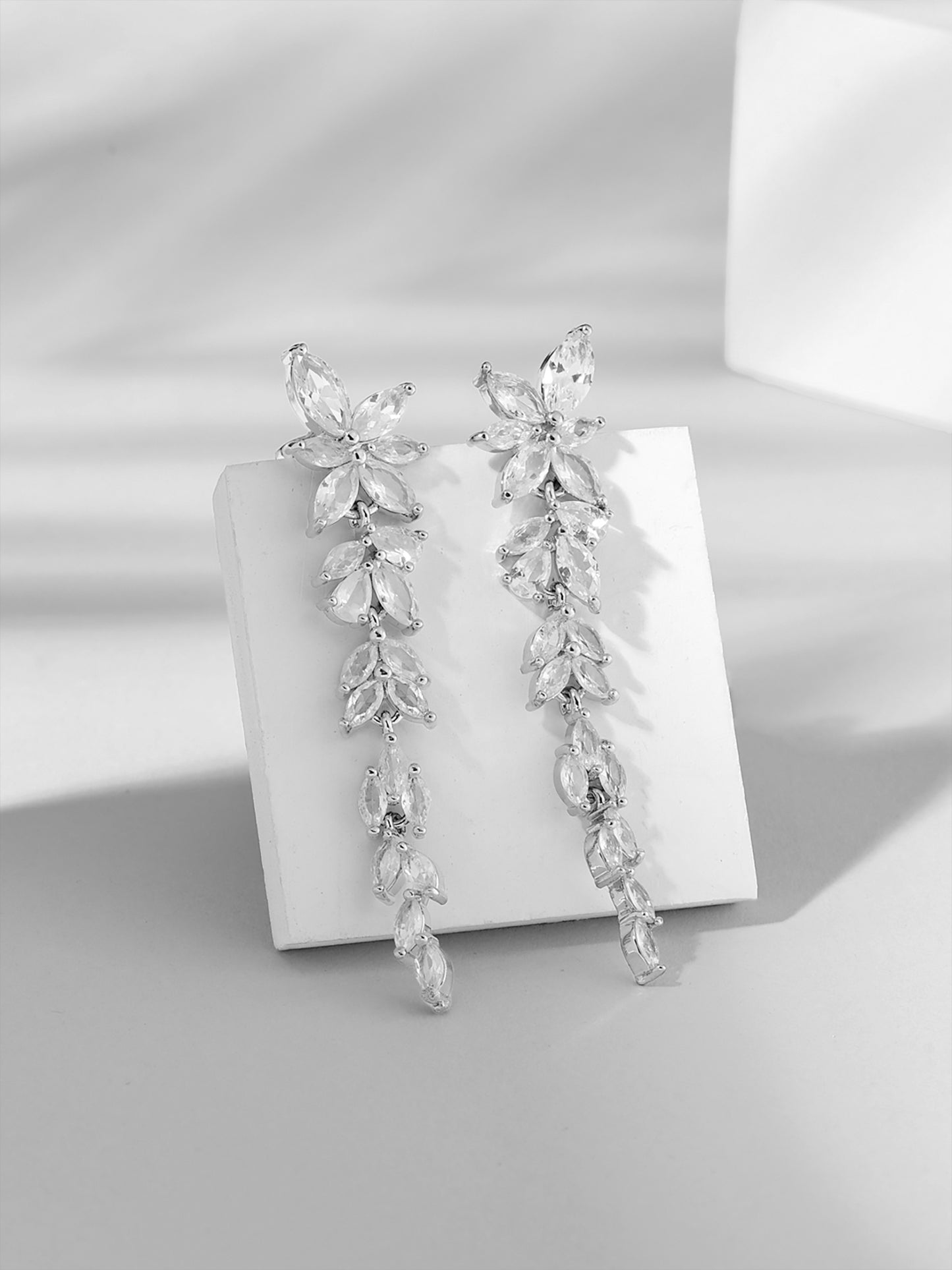 Dangler Drop Earrings for Women White Crystal Flower Designed Dangler Drop Earrings for Women and Girls