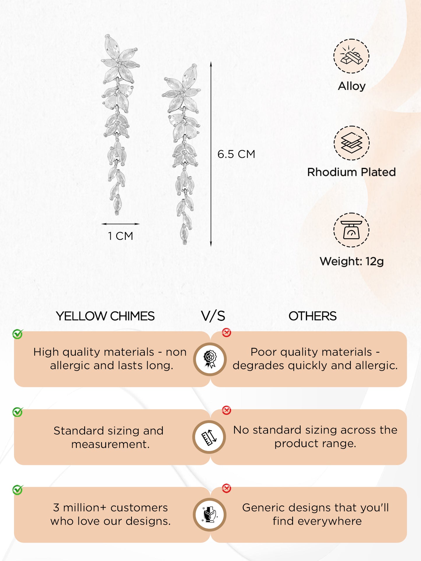 - Perfect Dimensions: With a size of 6.5 cm in length and 1 cm in width, these earrings are a statement piece without being overwhelming.