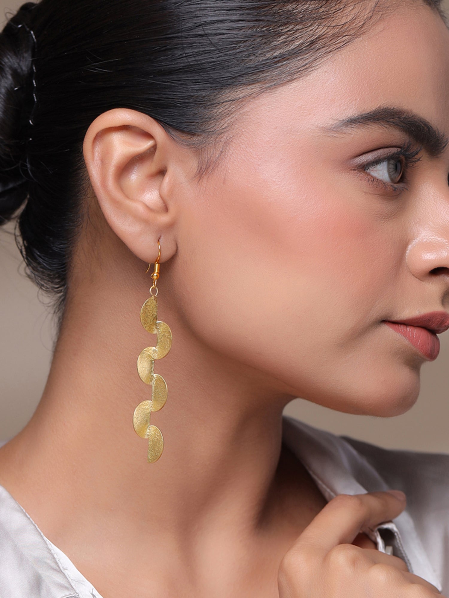 - SIZE DETAILS : Long Earring Length is 9 CM * Width is 1.3 CM. Weight is 7.31gr. Material is Gold Plated and Metal is Brass, Closure is Fish Hook.