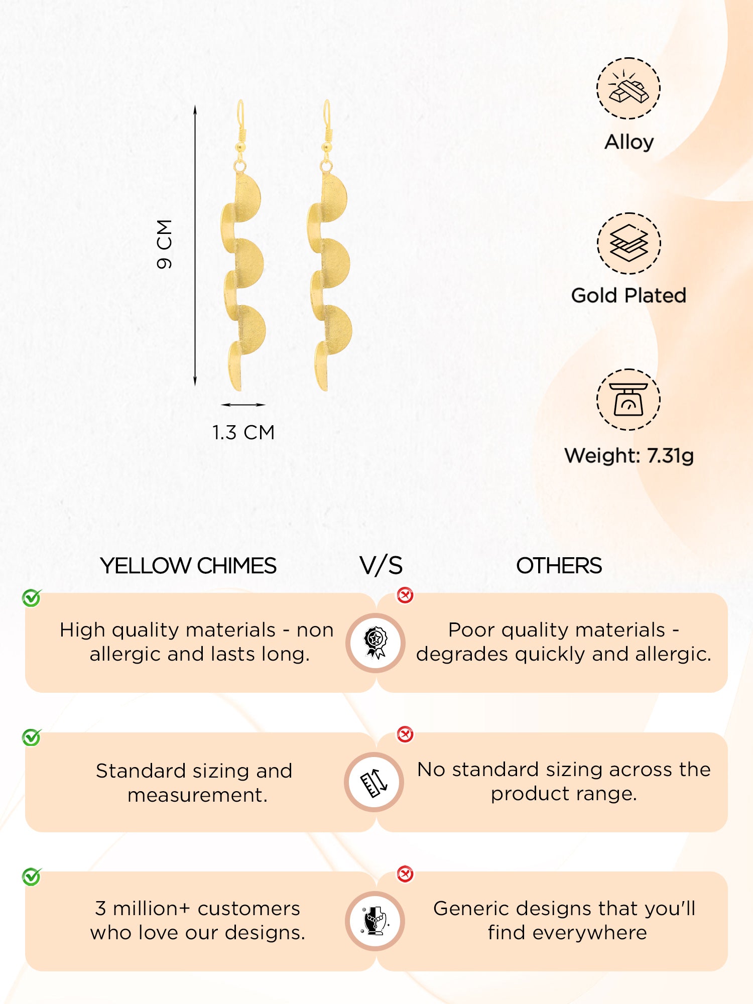 - TRENDY DESIGN: Crafted with gold-plated brass and featuring a unique design, these Yellow Chimes Dangler earrings are both fashionable and versatile. The size and weight of these earrings are perfect for everyday wear, making them a comfortable and stylish accessory for any outfit.