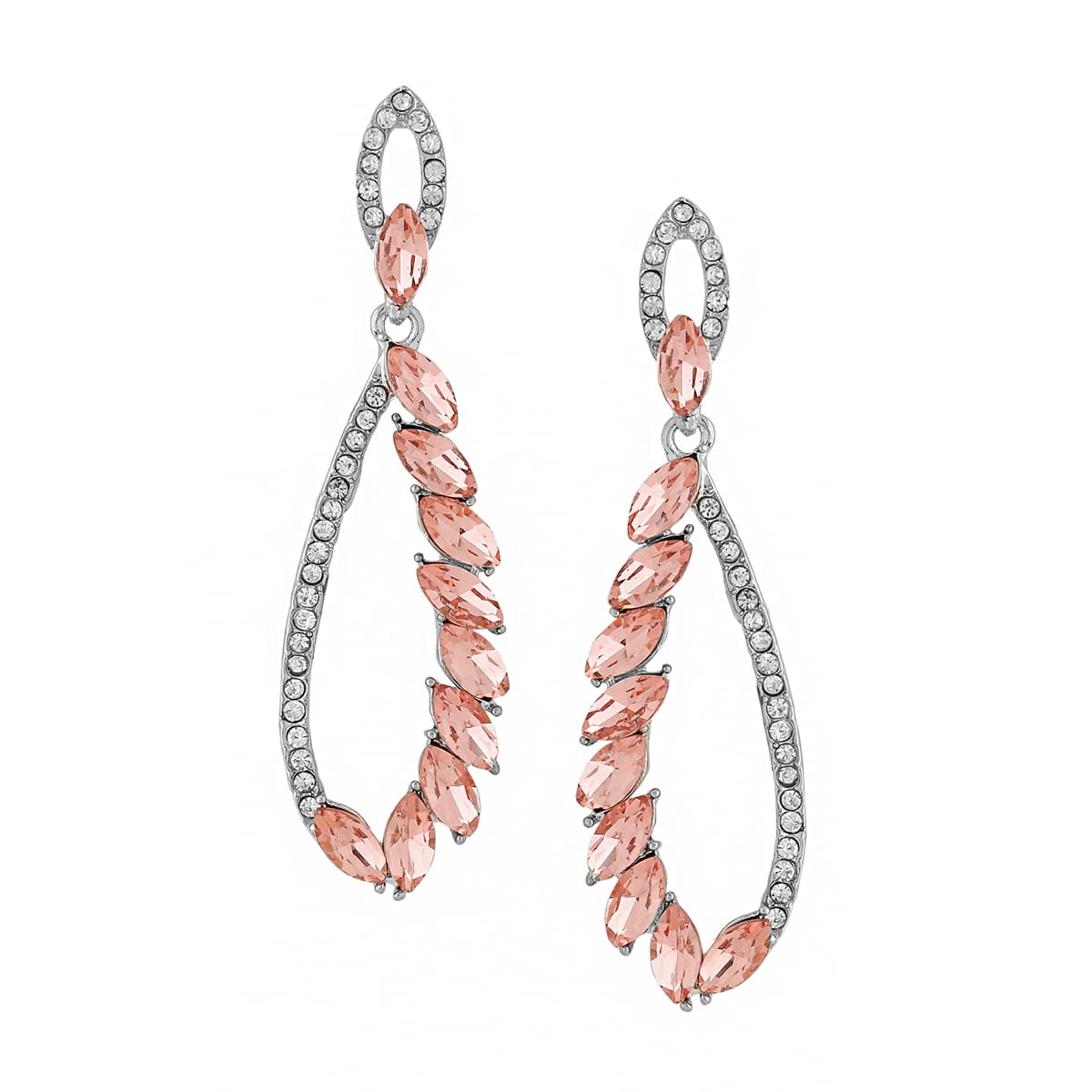 Dangler Earrings for Women | Silver Toned Leaf Shaped Danglers Earrings | Pink & White Crystal Studded Fashion Earrings | Birthday Gift For Girls Anniversary Gift for Wife