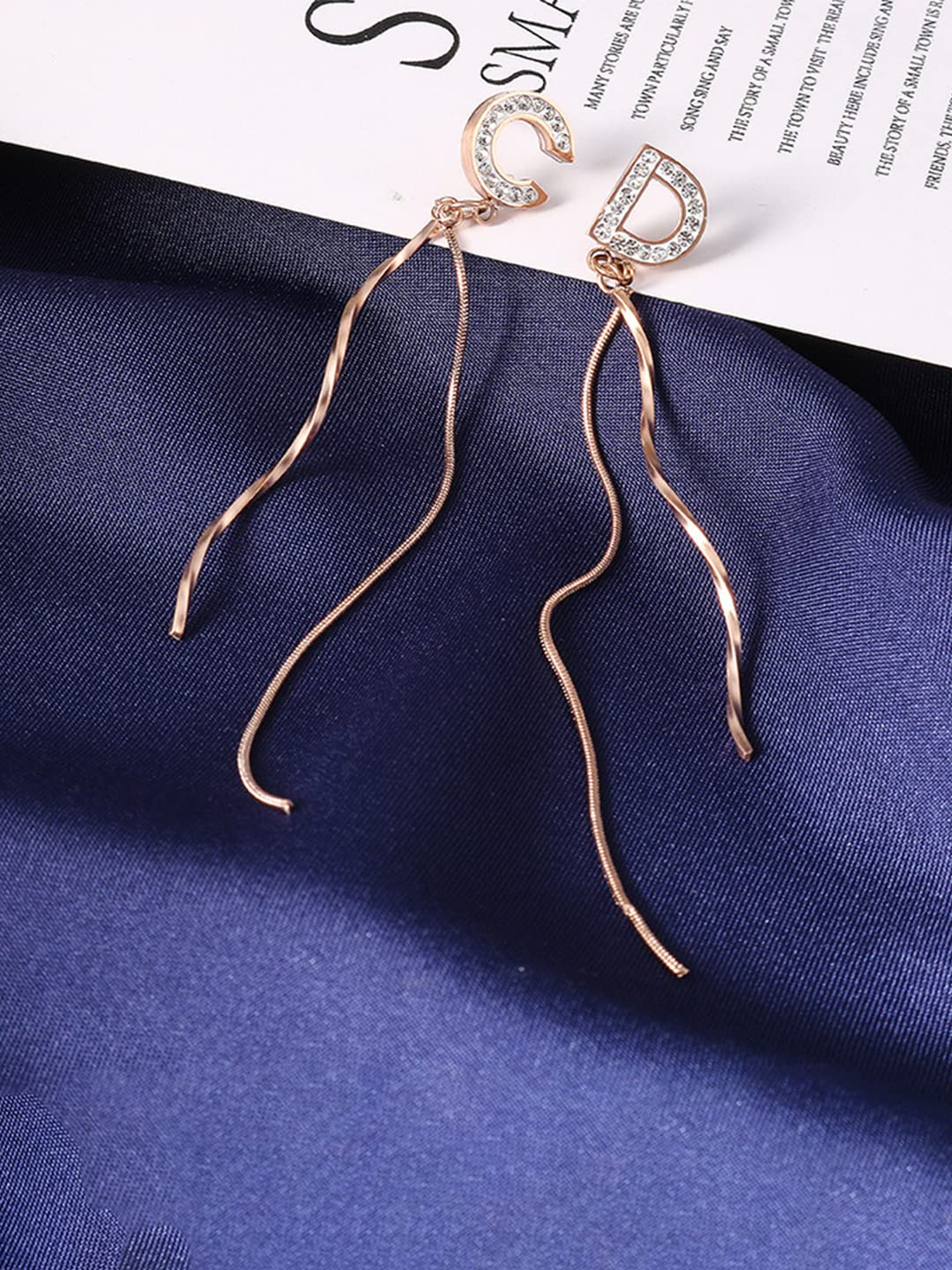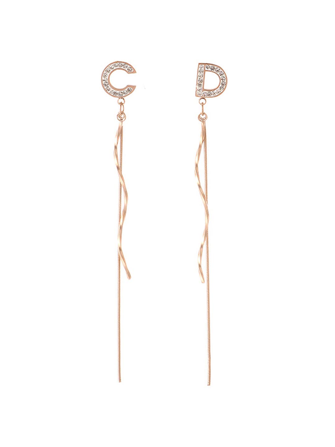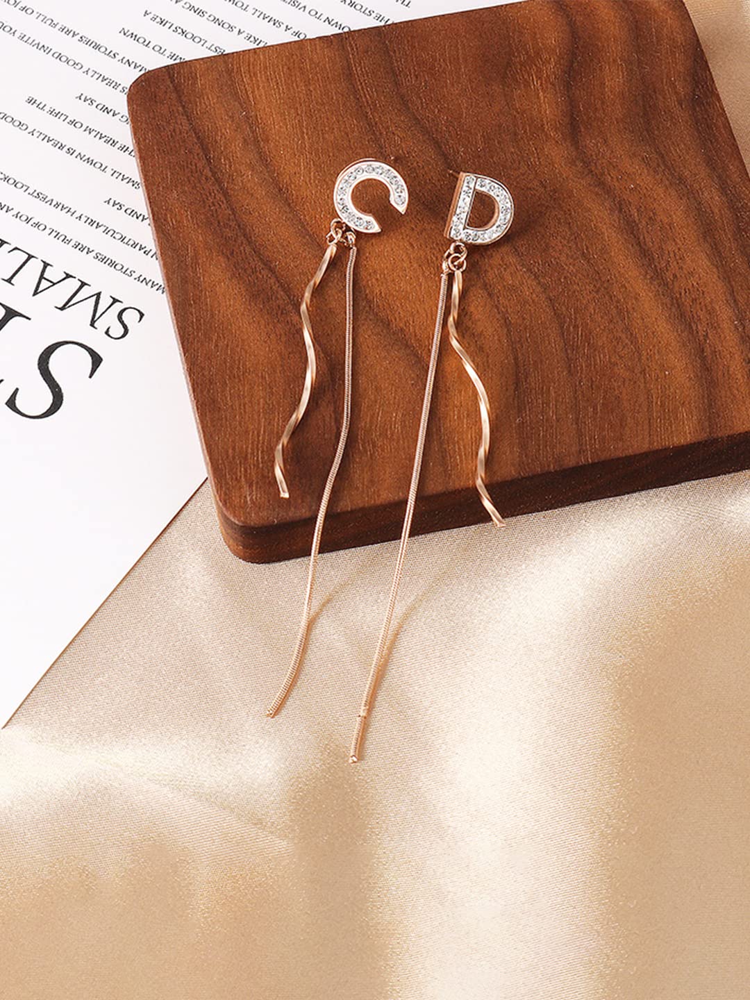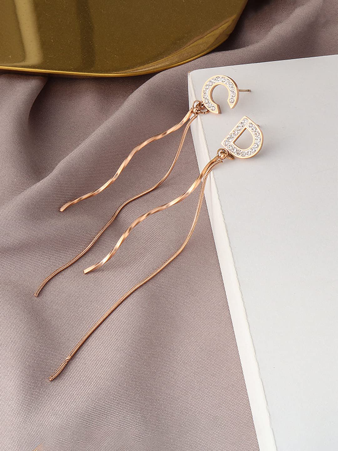 Danglers Earrings for Women Rose Gold Plated Stainless Steel C & D Letter Mismatched Danglers Earrings For Women and Girls