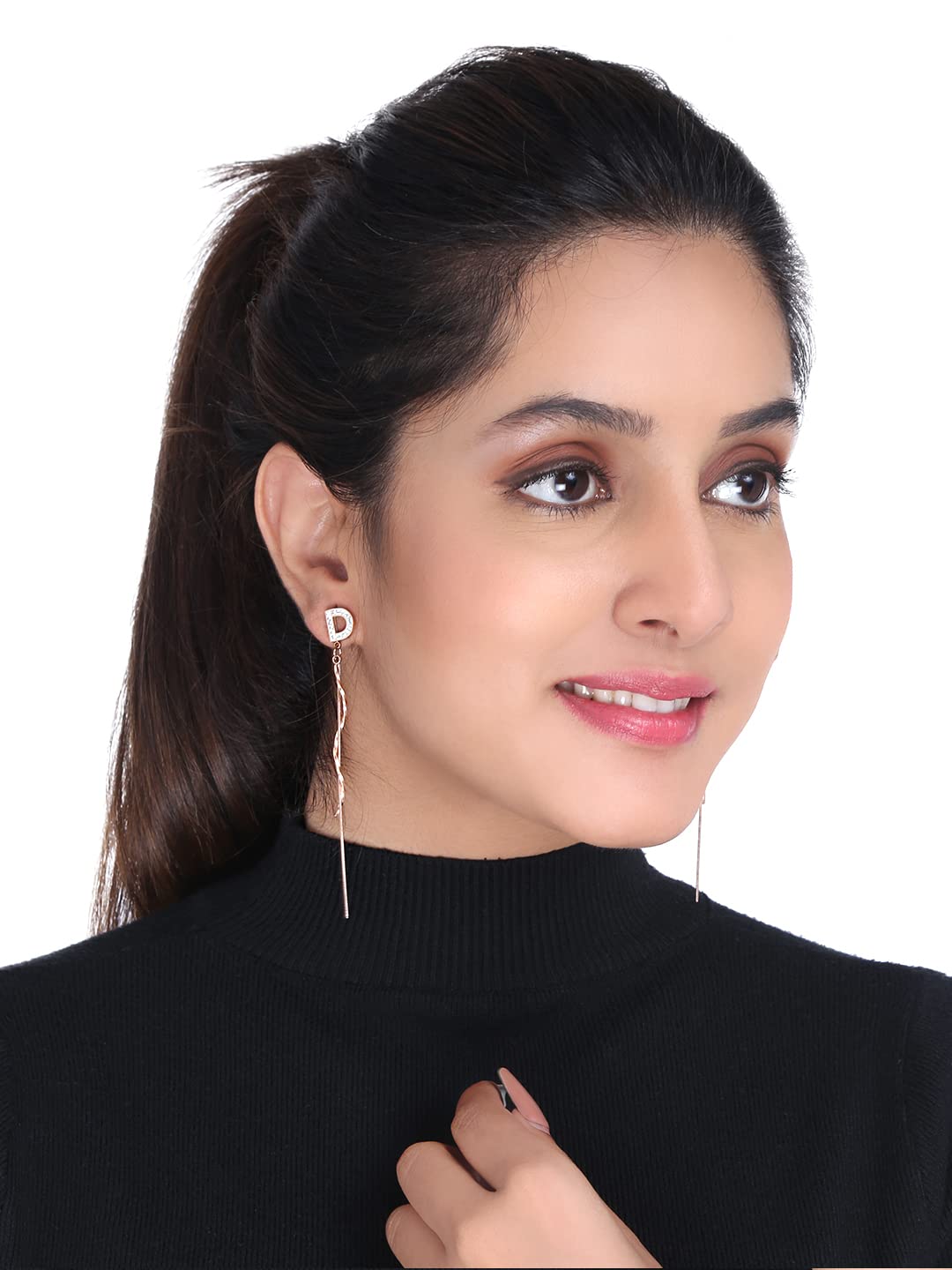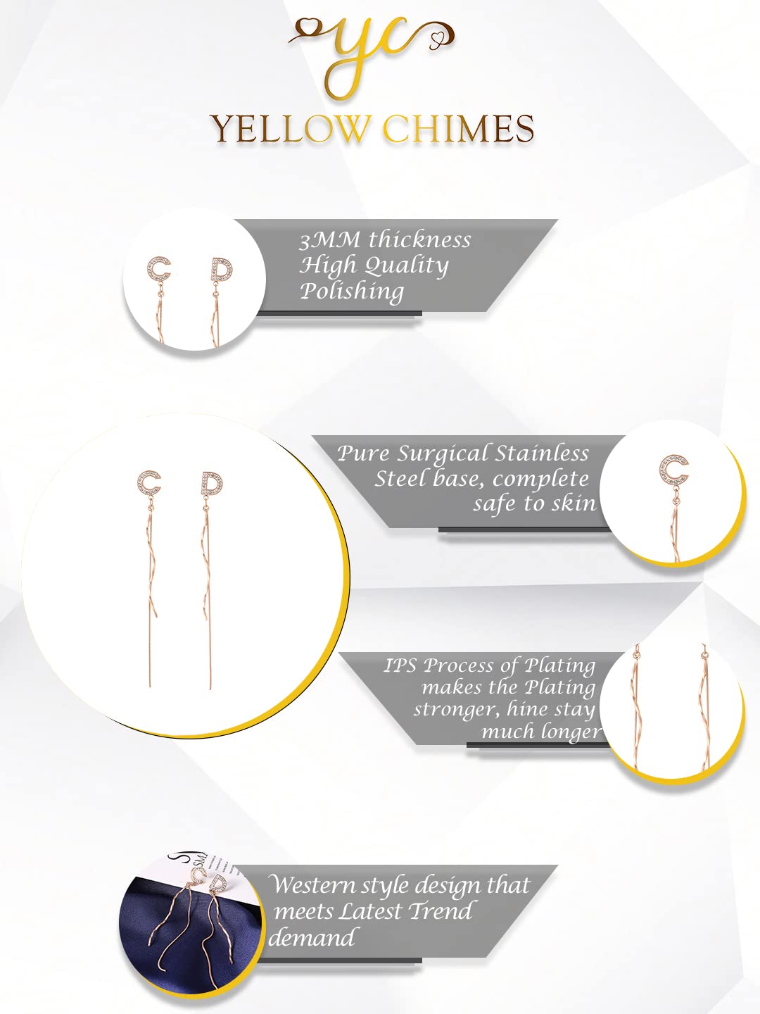 Yellow Chimes Danglers Earrings for Women Rose Gold Plated Stainless Steel C & D Letter Mismatched Danglers Earrings For Women and Girls