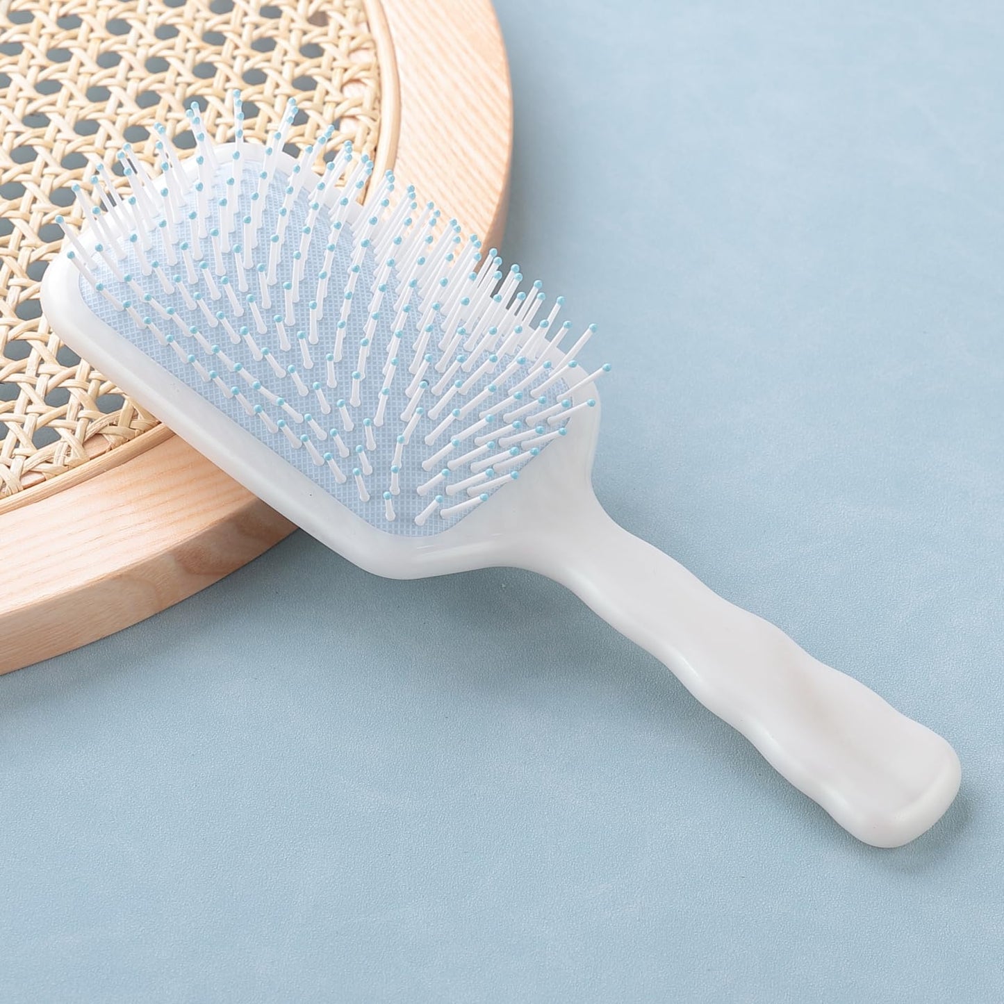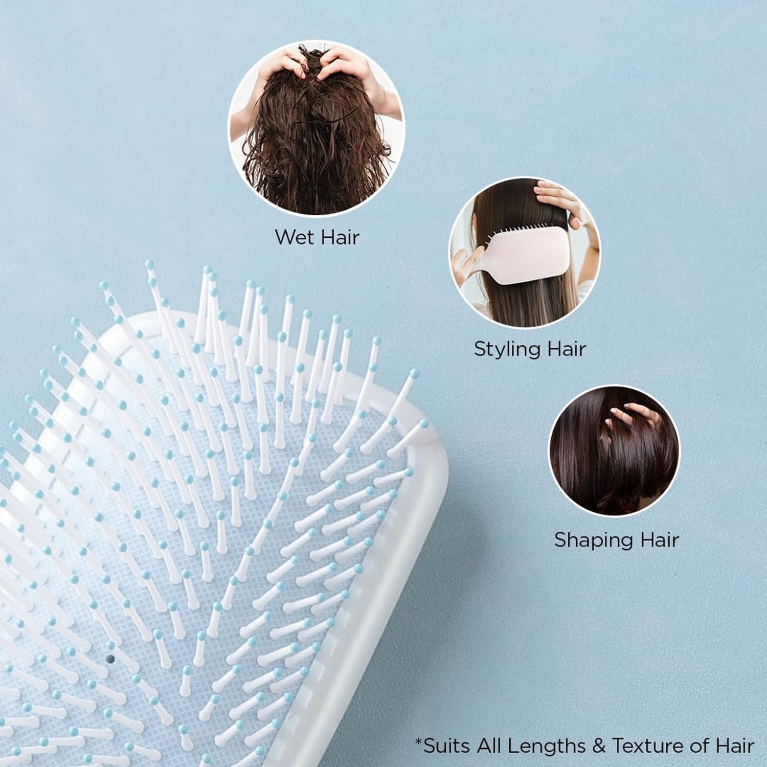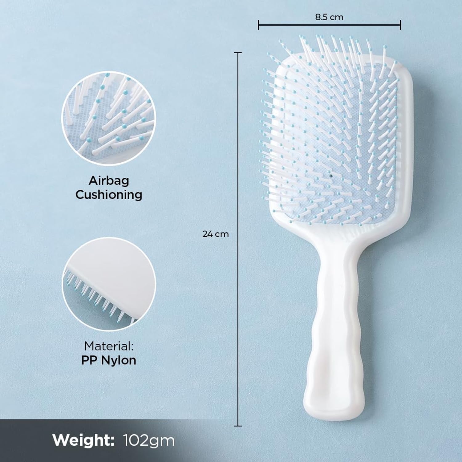 - AIRBAG CUSHIONING: The brush features airbag cushioning that provides extra support for your hair and scalp while brushing. This reduces the risk of damage and improves overall comfort during use.IDEAL FOR WET & DRY HAIR DETANGLING: Whether your hair is wet or dry, our detangle brush effortlessly detangles knots and snags, leaving your hair smooth and manageable. No more breakage or damage!
