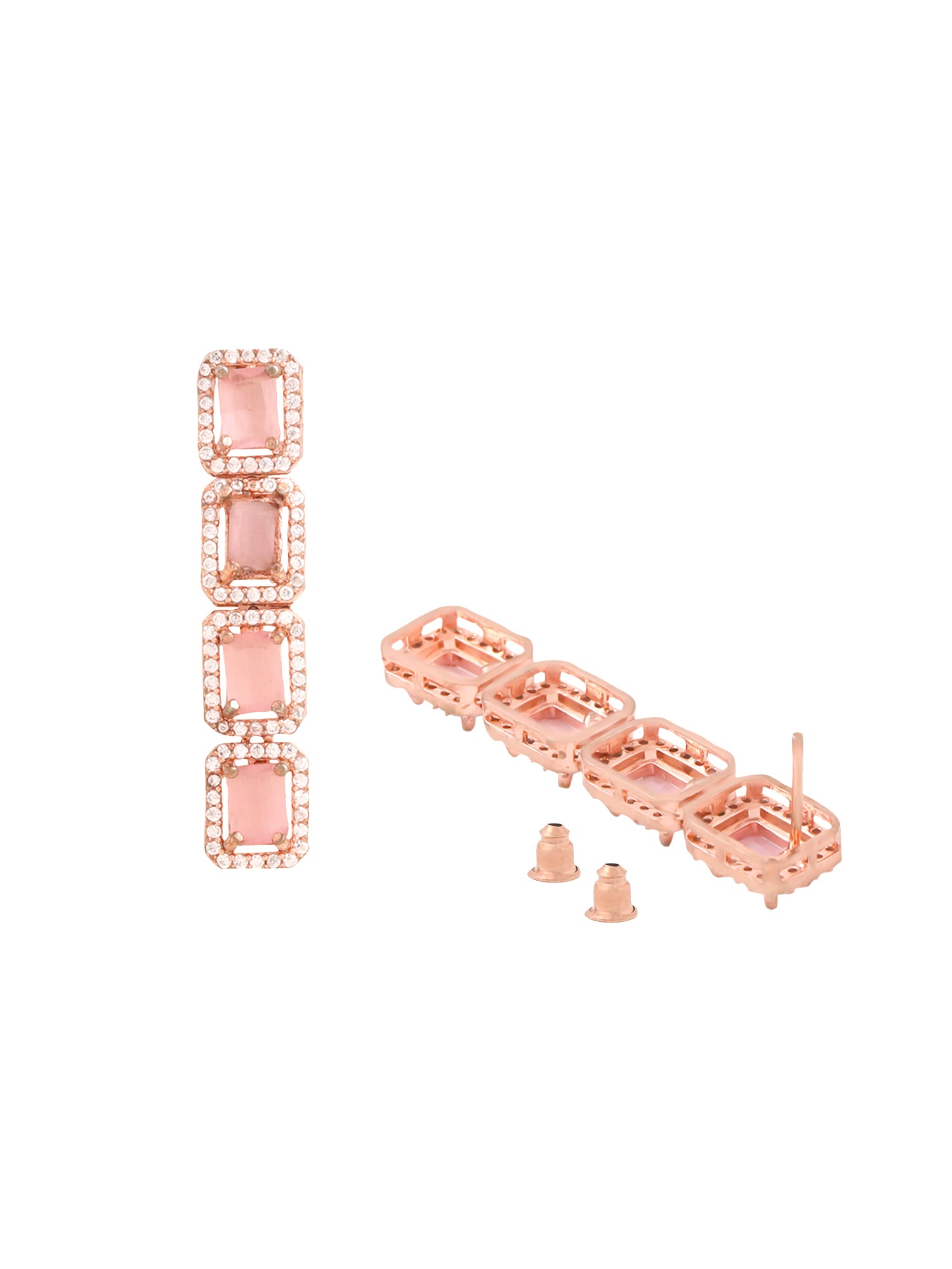 - SIZE DETAILS: Necklace Front length - 38 CM. Total length - 44.5 CM (including adjustable), Earrings Length is 4.7 CM * Width is 1 CM. Weight is 58.35 gr. Material is Rosegold Plated and Metal is Brass, Closure is Hook Clasp.