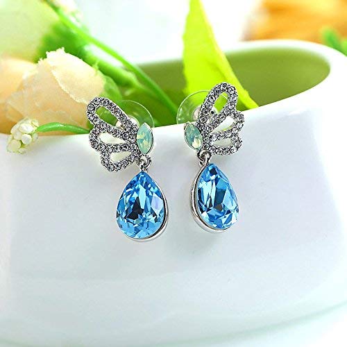 Drop Earrings for Women Blue Crystal Butterfly Drop Earrings Silver Plated Splendid Drop Earrings for Women and Girls Valentine Gift for Girls