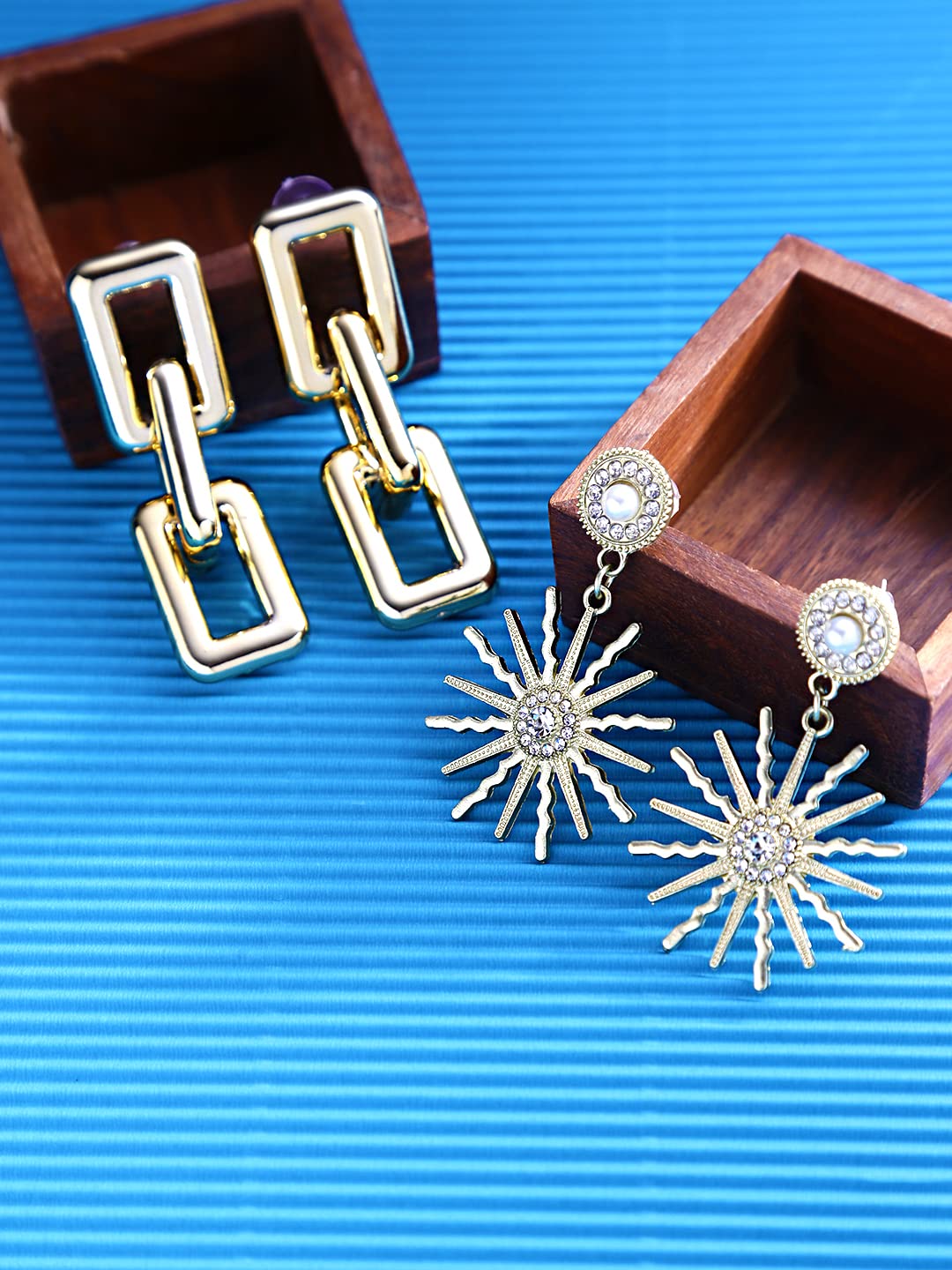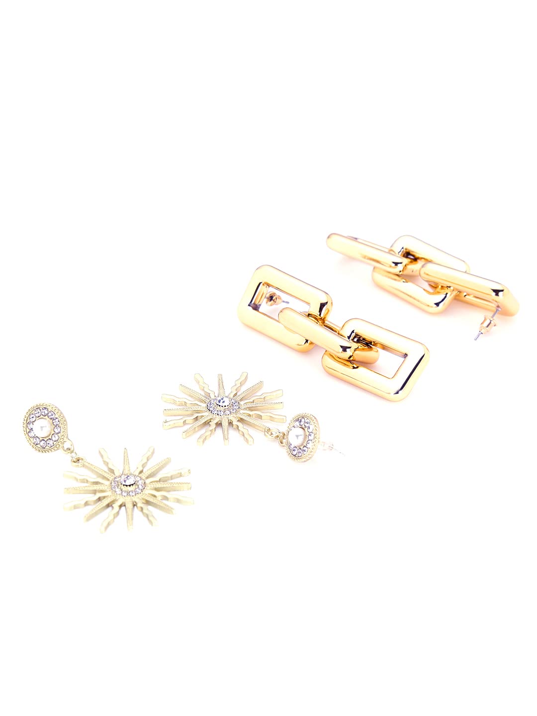 Drop Earrings for Women Combo of 2 Pairs Gold Plated Link Chain Sun Shaped Golden Drop Earrings for Women and Girls.