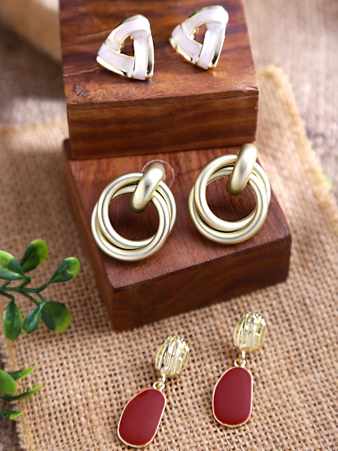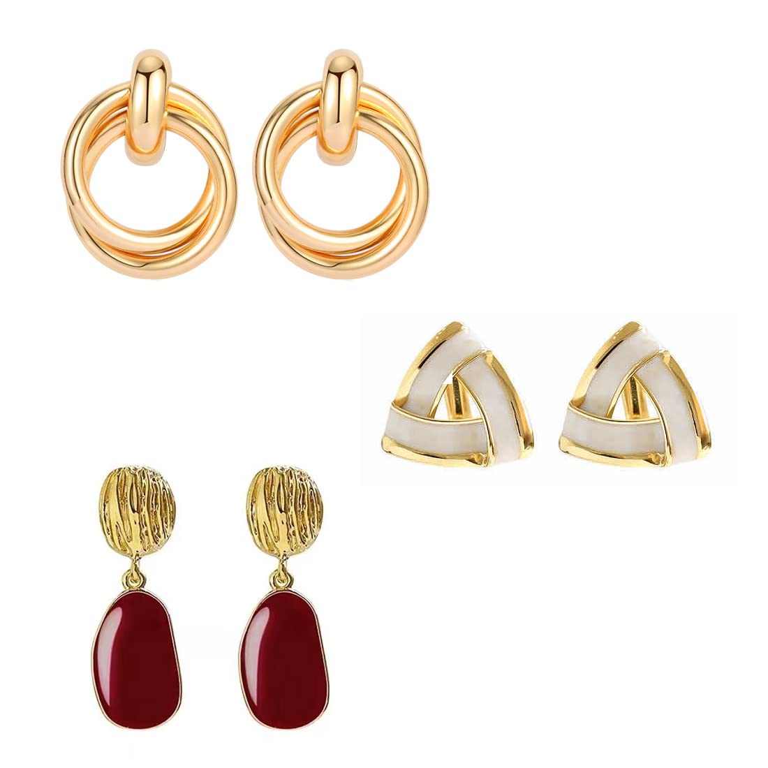 - Versatile Combo: Three unique pairs of earrings—geometric drop and floral stud styles—offer versatility for any occasion.