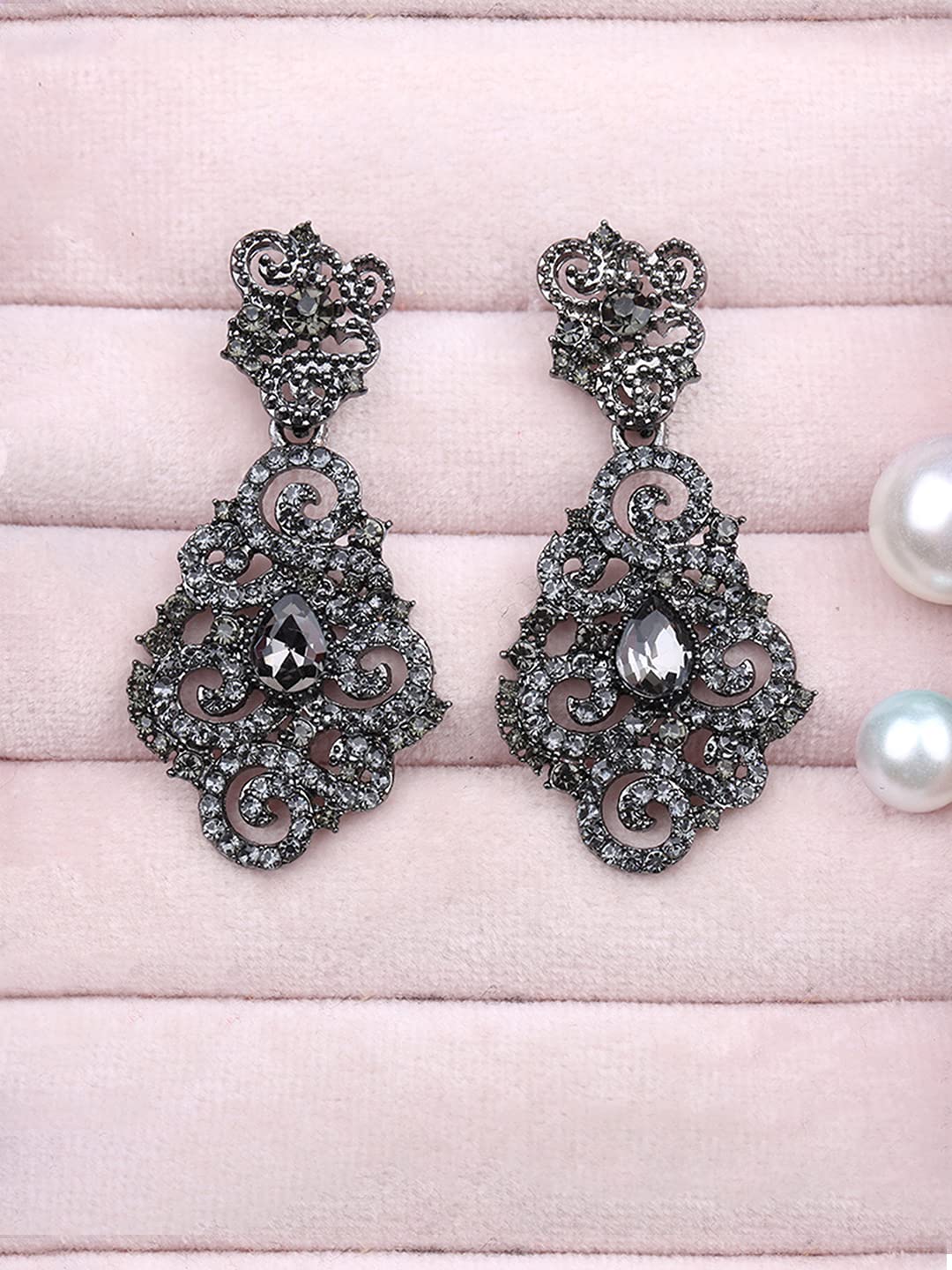 Drop Earrings for Women Crystal Black Rhodium Plated Drop Earrings for Women and Girls.
