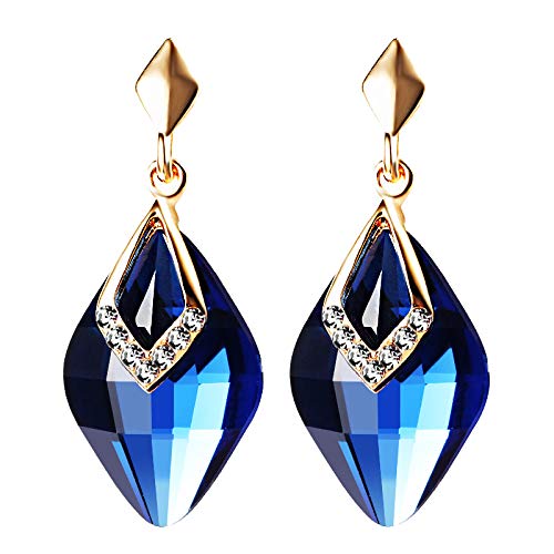 Drop Earrings for Women Elegant Gold Plated Blue Crystal Drop Earrings for Women and Girls.