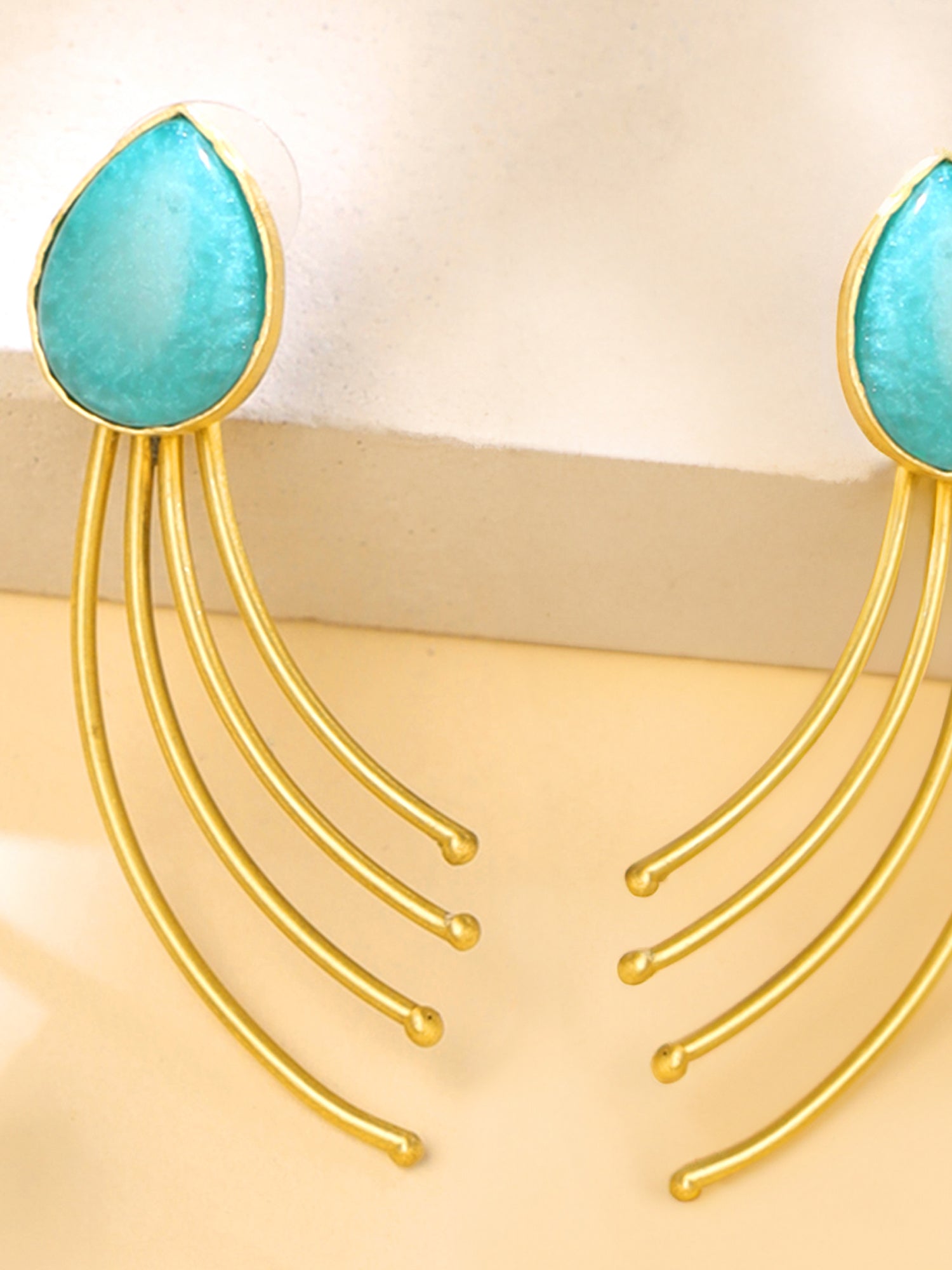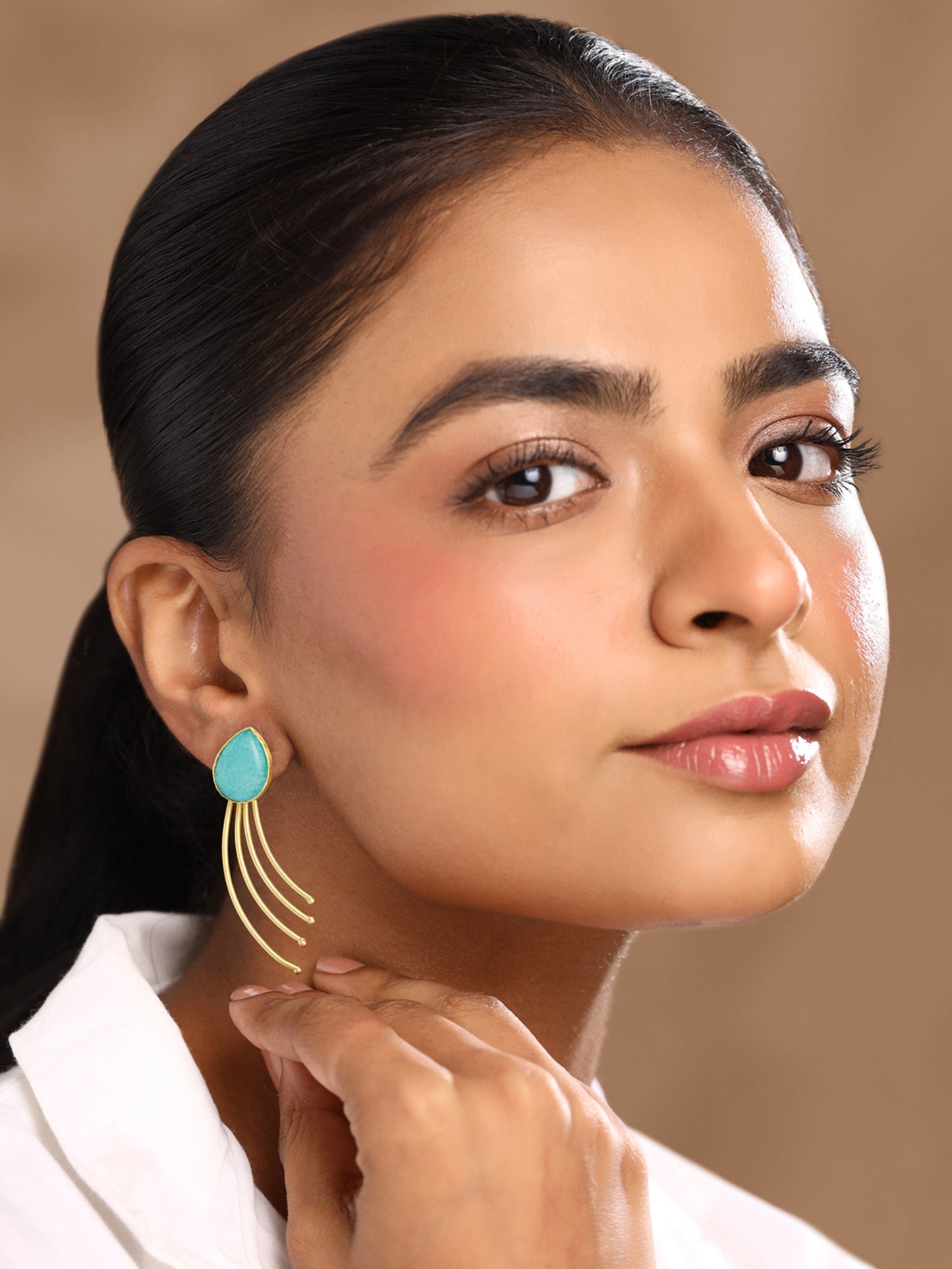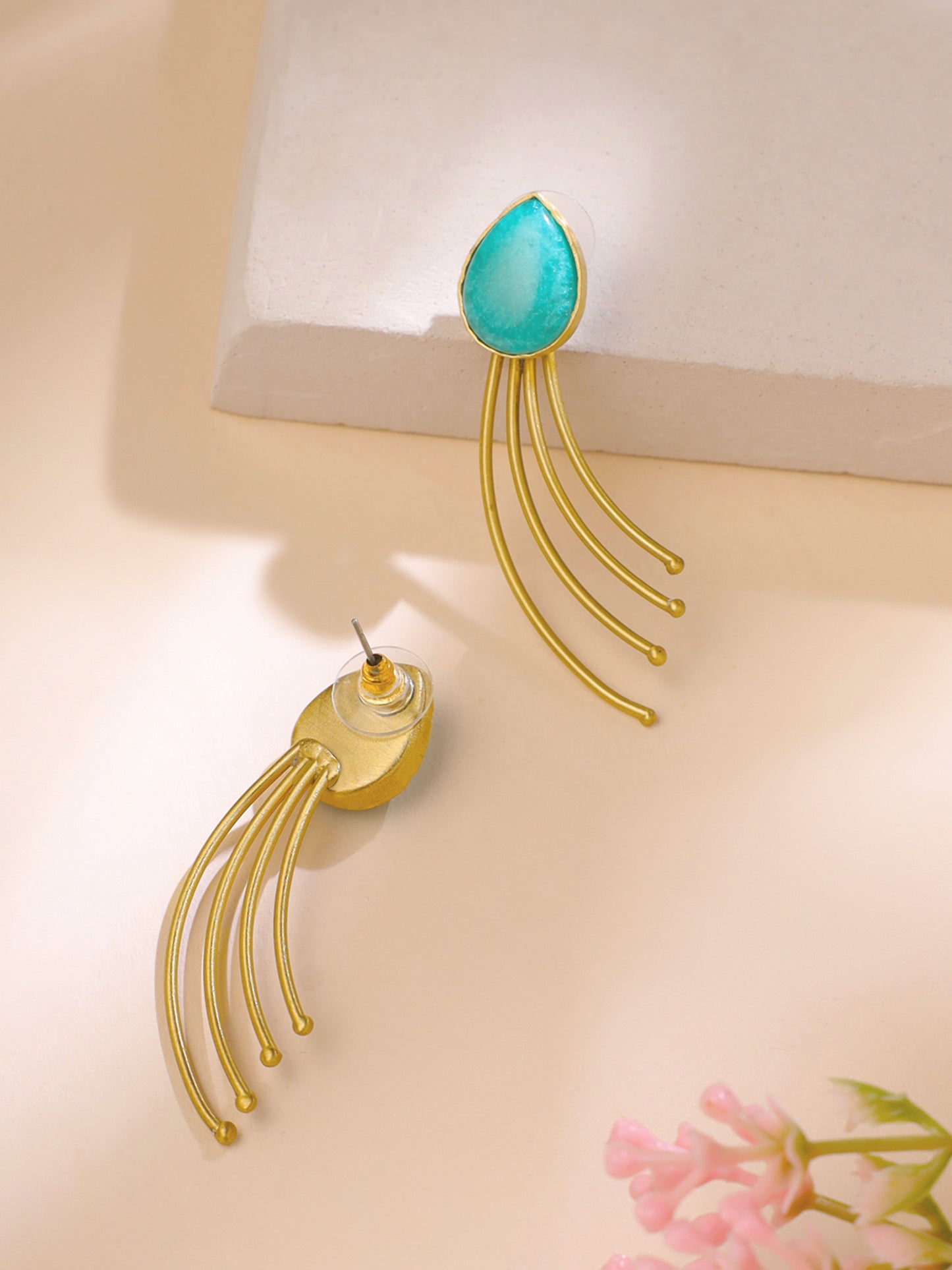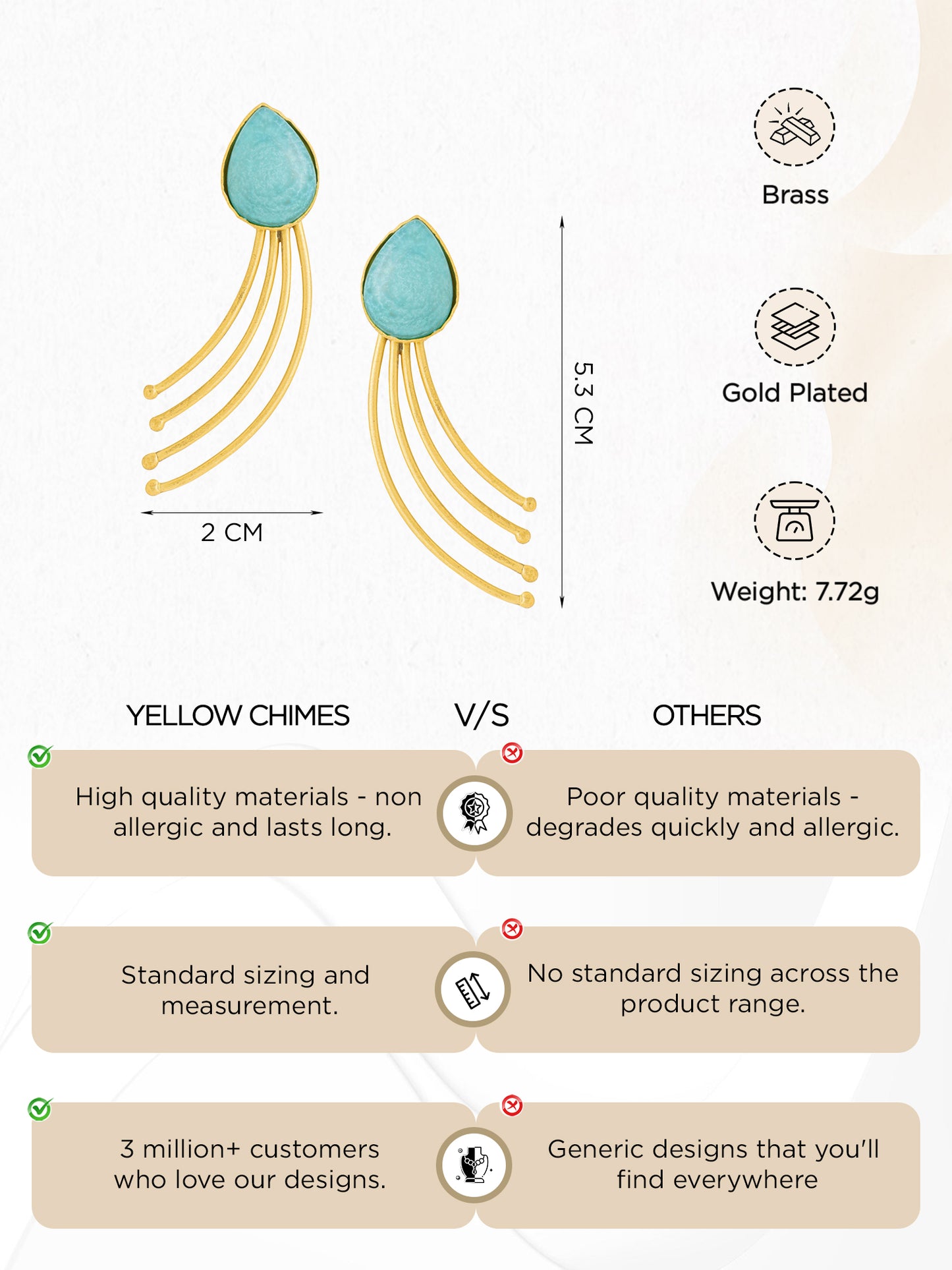 Yellow Chimes Drop Earrings For Women | Fashion Golden Women Earrings | Green Stone Gold Plated Drop Earrings For Girls | Birthday Gift for Girls Anniversary Gift for Women Lightweight Comfort: Enjoy all-day elegance with these ultra-light earrings, blending style and comfort for any occasion. Striking gold plating adds sophistication, keeping your earrings shiny and a staple in your collection. Versatile Styling: Elevate your look from the office to festivities; these statement earrings enhance any outfit effortlessly. A thoughtful gift for mothers, friends, or wives; perfect for casual outings and special celebrations. SIZE DETAILS: Earring Length is 5.3 CM * Width is 2 CM. Weight is 7.72 gr. Material is Gold Plated and Metal is Brass, Closure is Push & Back. PACKAGING: Your favorite piece of Jewellery will reach you in an Elegant Yellow Chimes box with safety and precautions. You can leave it to us the job of delivering your Jewellery in original condition to you at your door-step. Elegant Design: Stunning gold-plated earrings in premium brass, one size fits all for a flawless look that complements any outfit. Anti-tarnish design ensures beauty without the weight of elaborate styles, offering charm and comfort. Enjoy a worry-free fit with a push-back clasp, so you can go about your day without losing your earrings!