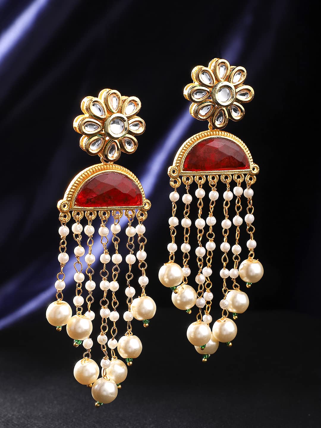 Yellow Chimes Drop Earrings for Women Traditional Gold Plated Studded Red Stone Ethnic Floral Shaped Drop Earrings for Women and Girls