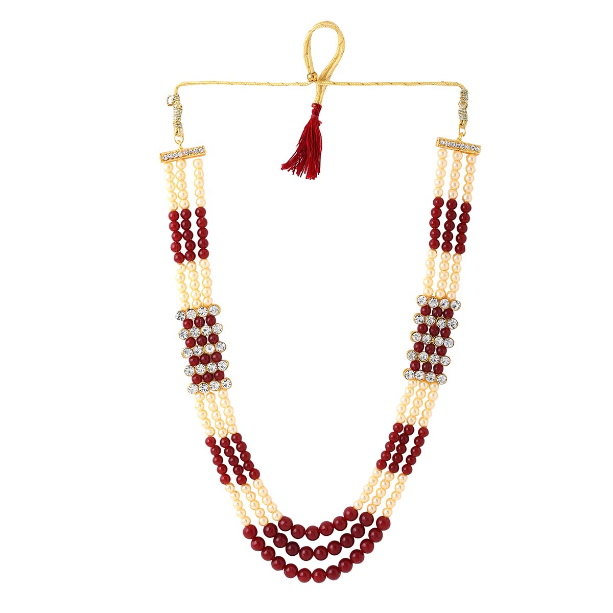 - A maharaja style dulha moti mala for Groom to match any shade special attire. Complete the Looks with this Mala haar for men.Usage- An ethnic dress- be it saree to drape or Kurta Suit of any style, perfect choice for all your festive occasions! With this jewellery set you don't need anything else to make you stand out.