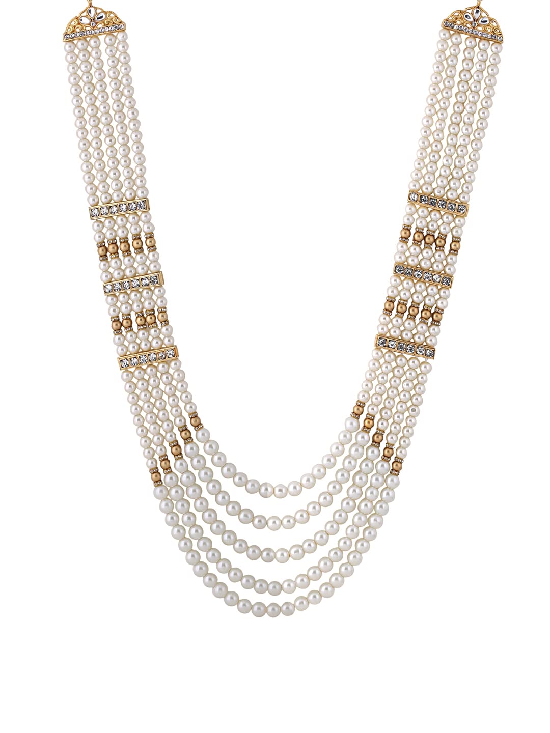 Yellow Chimes Dulahmala For Mens White Beads Pearl Necklace Jewellery for Groom Dulha Moti Mal Haar For Men Sherwani Necklace