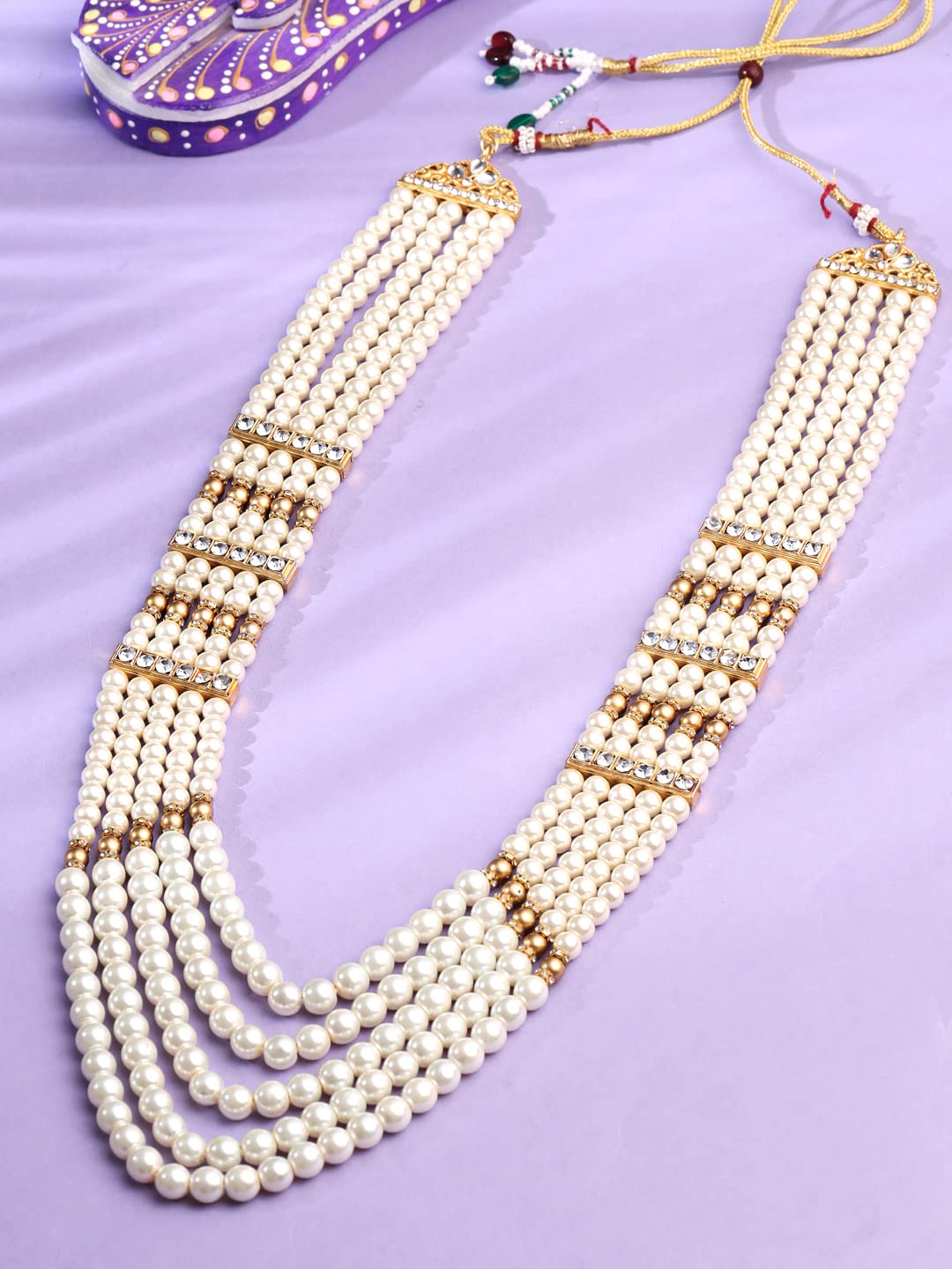 Dulahmala For Mens White Beads Pearl Necklace Jewellery for Groom Dulha Moti Mal Haar For Men Sherwani Necklace
