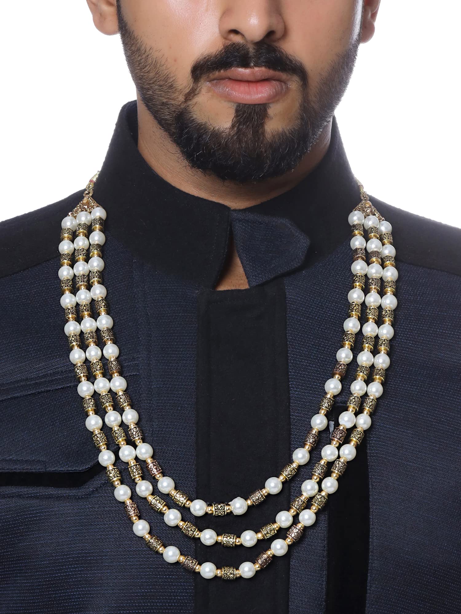 - A maharaja style dulha moti mala for Groom to match any shade special attire. Complete the Looks with this Mala haar for men.Usage- An ethnic dress- be it saree to drape or Kurta Suit of any style, perfect choice for all your festive occasions! With this jewellery set you don't need anything else to make you stand out.