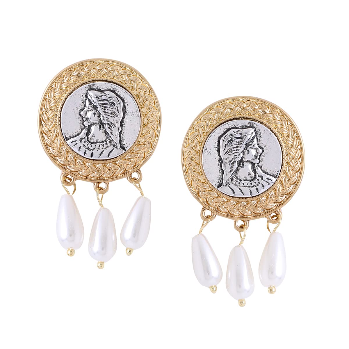 Earring For Women Gold Tone Pearl Bead Hanging Round Girl Embellished Statement Earrings For Women and Girls