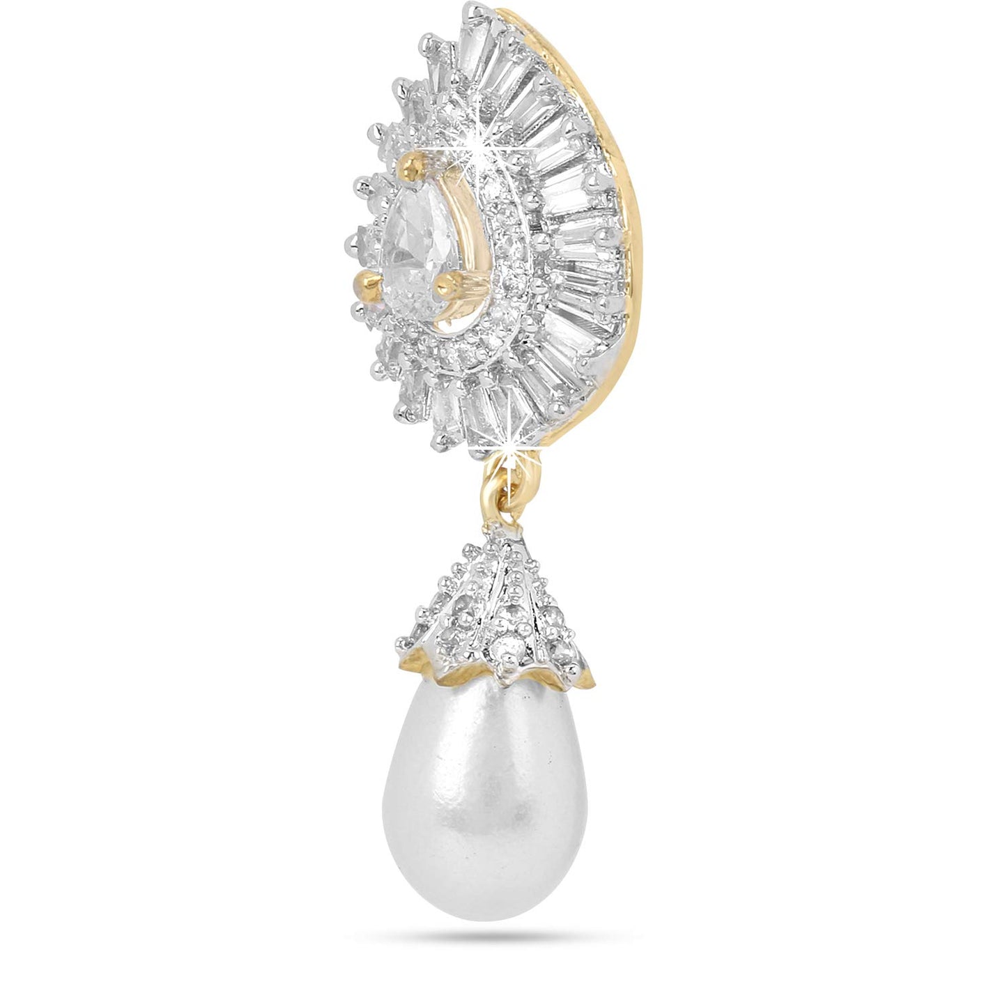 Earrings for Women AD/American Diamond White Earrings 18k Gold Plated HandCrafted Pearl Drop Earrings for Women and Girls