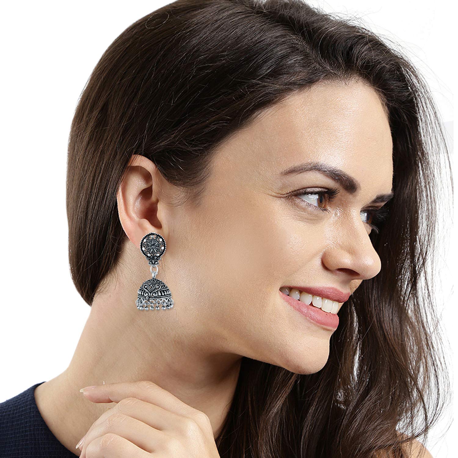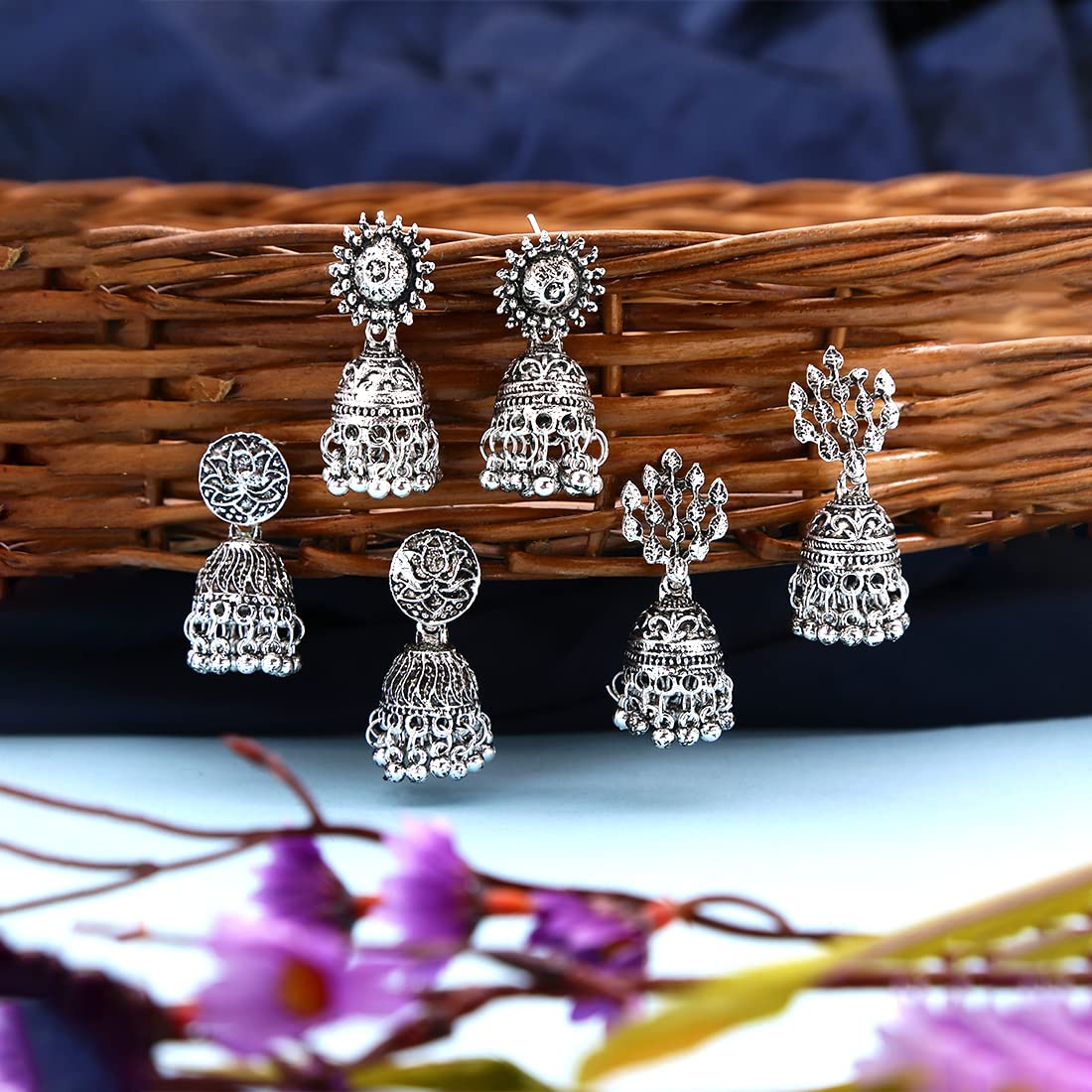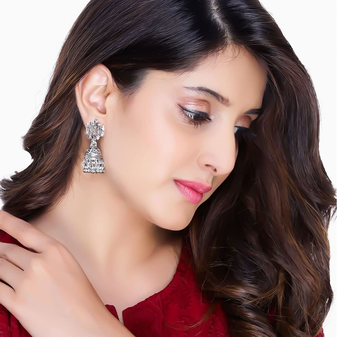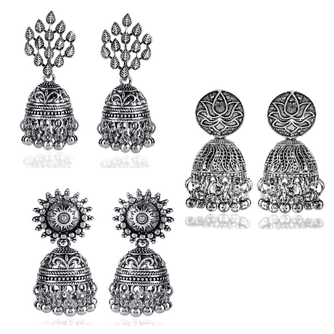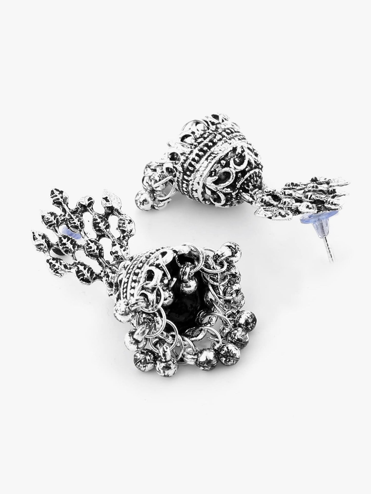 Earrings for Women and Girls | Traditional Silver Oxidised Jhumka | German Silver Earring Set | Leaf Shaped Jhumki Earrings Combo | Accessories Jewellery for Women | Birthday Gift For Girls and Women Anniversary Gift for Wife