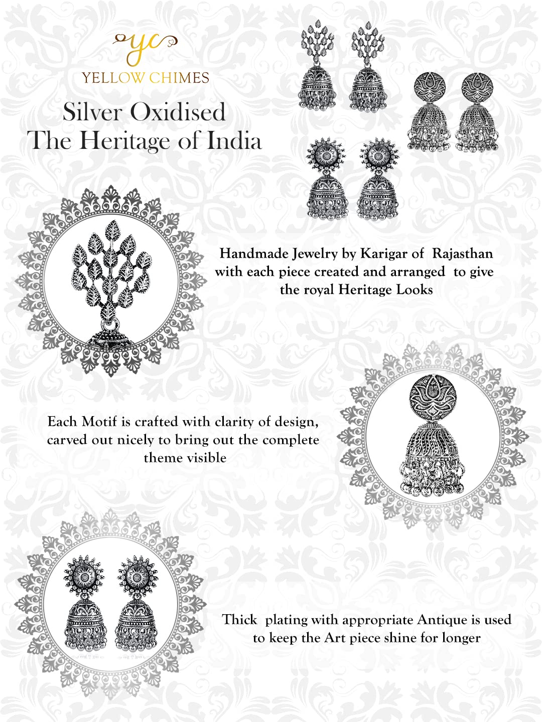 Yellow Chimes Earrings for Women and Girls | Traditional Silver Oxidised Jhumka | German Silver Earring Set | Leaf Shaped Jhumki Earrings Combo | Accessories Jewellery for Women | Birthday Gift For Girls and Women Anniversary Gift for Wife Care Instructions: Wipe with Soft Cloth after every use. Keep away from Water, sprays or perfumes. Try to store your jewellery in a flat box to avoid accidental scratches. Packaging- Your favorite piece of Jewellery will reach you in an Elegant Yellow Chimes box with safety and precautions. You can leave it to us the job of delivering your Jewellery in original condition to you at your door-step.