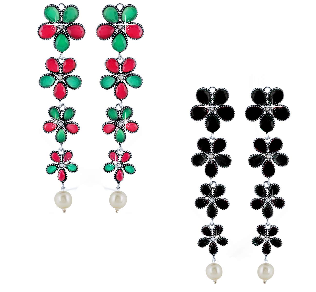Earrings for Women and Girls | Traditional Silver Oxidised Jhumka | German Silver Oxidized Drop Earring Set | Earrings Combo | Accessories Jewellery for Women | Birthday Gift For Girls and Women Anniversary Gift for Wife