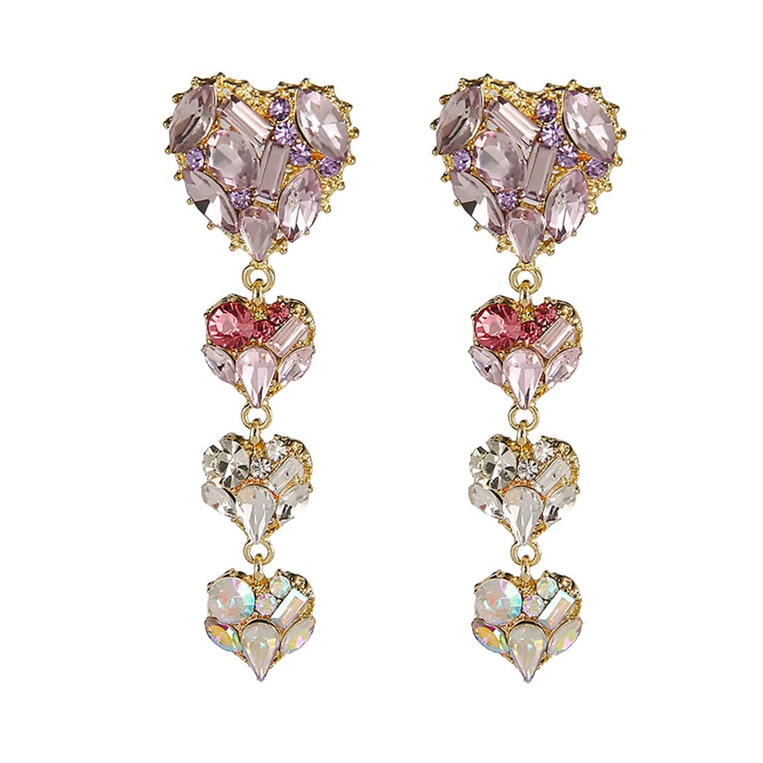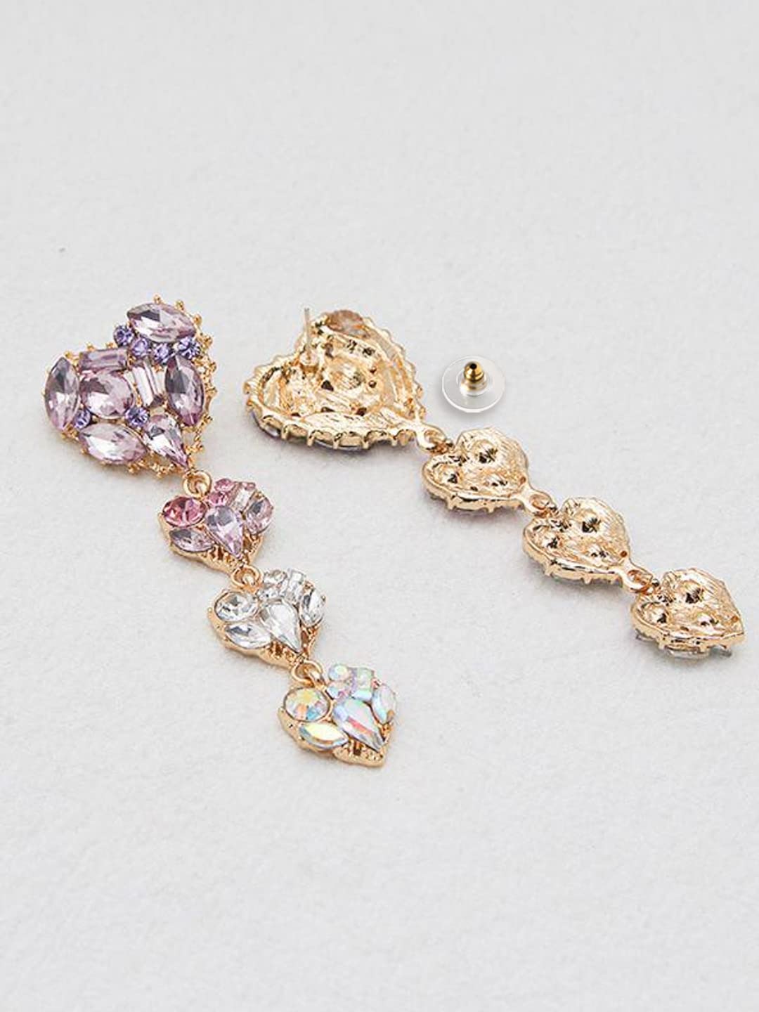 Dangler Earrings for Women | Heart Shaped Multicolor Gold Toned Earrings | Long Chain Gold Plated Dangler Earrings | Birthday Gift For Girls Anniversary Gift for Wife