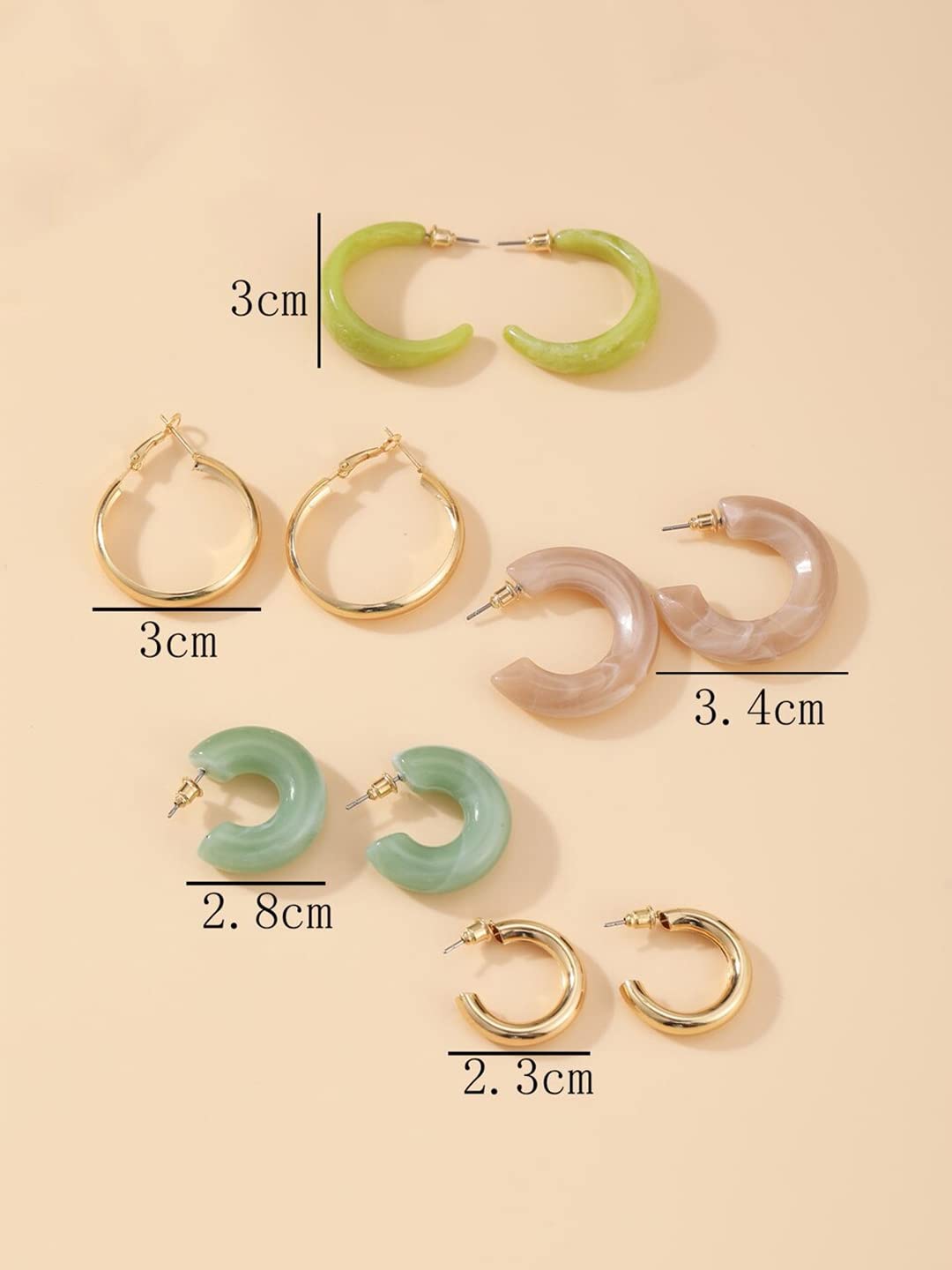 - Stylish Variety: Includes five unique pairs of hoop earrings, each radiating a retro charm with vivid colors.