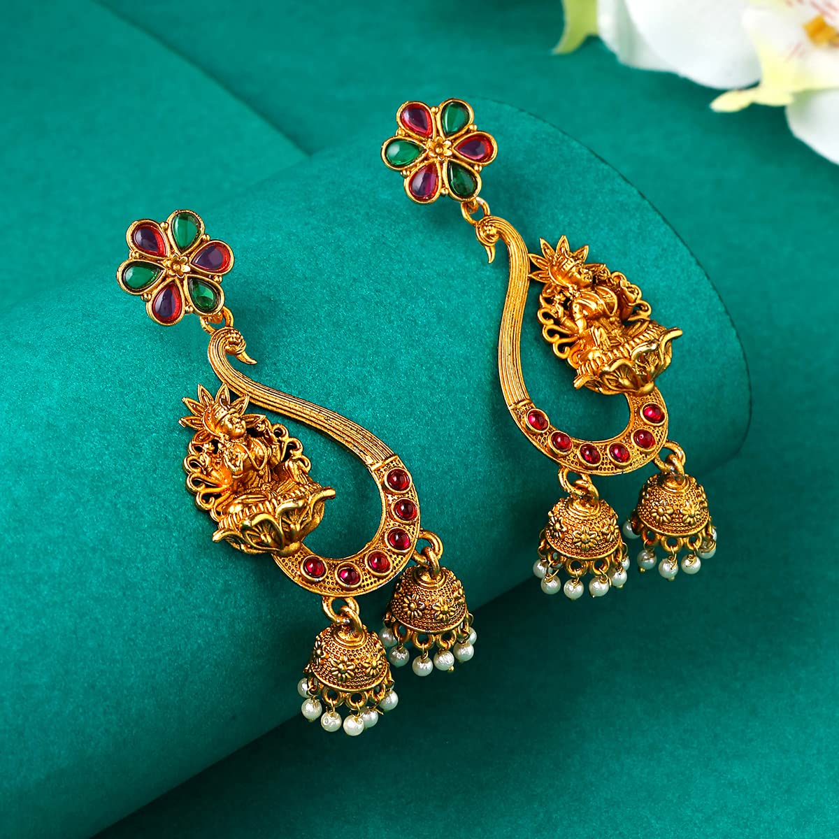 - These Beautiful Temple Earrings will match any of your Bridal outfits and gives you a bold look. Our Product is perfect for valentines Anniversary Birthday gift for Women,girlfriend,Wife.