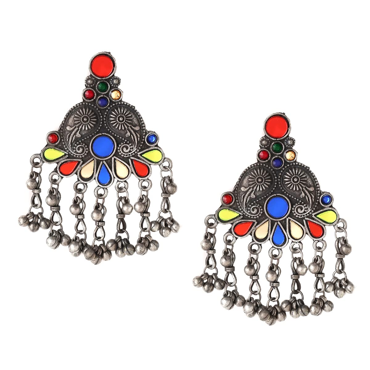 Discover the perfect blend of tradition and contemporary design with our Yellow Chimes Earrings, meticulously crafted for women and girls. These traditional silver oxidised danglers are not just accessories; they are a statement of elegance and style.