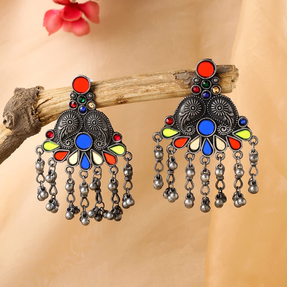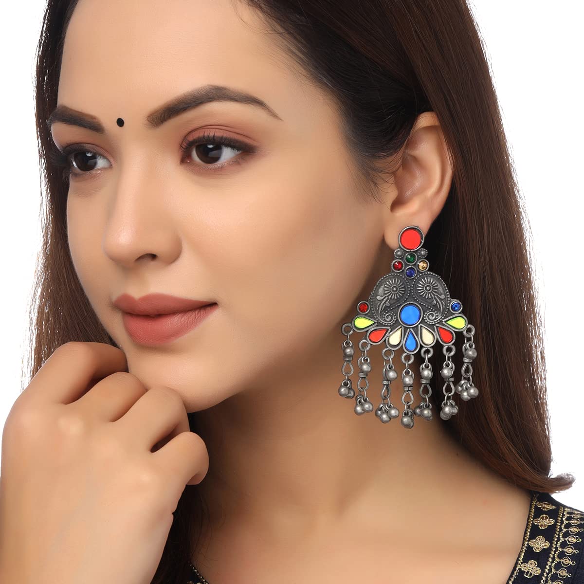 Yellow Chimes Earrings for Women and Girls Traditional Silver Oxidised Danglers |German Silver | Peacock Designed Dangler Earrings|Birthday Gift For girls and women Anniversary Gift for Wife