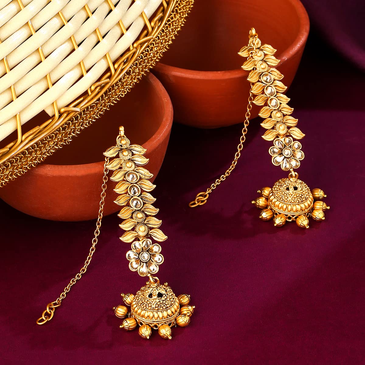 - This Gold Plated Matti Jhumka or Chain Earrings set is a perfect traditional and bridal Earrings. Our Product is perfect for valentines Anniversary Birthday gift for Women,girlfriend,Wife.