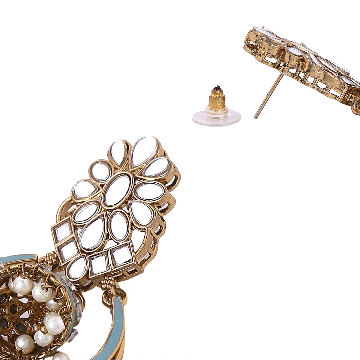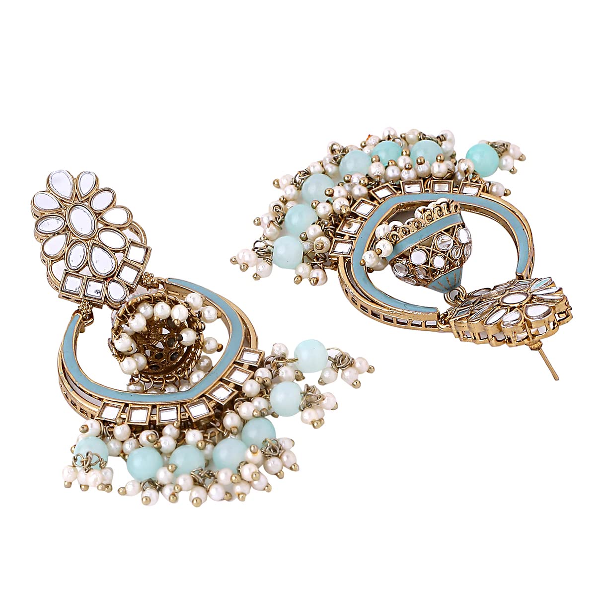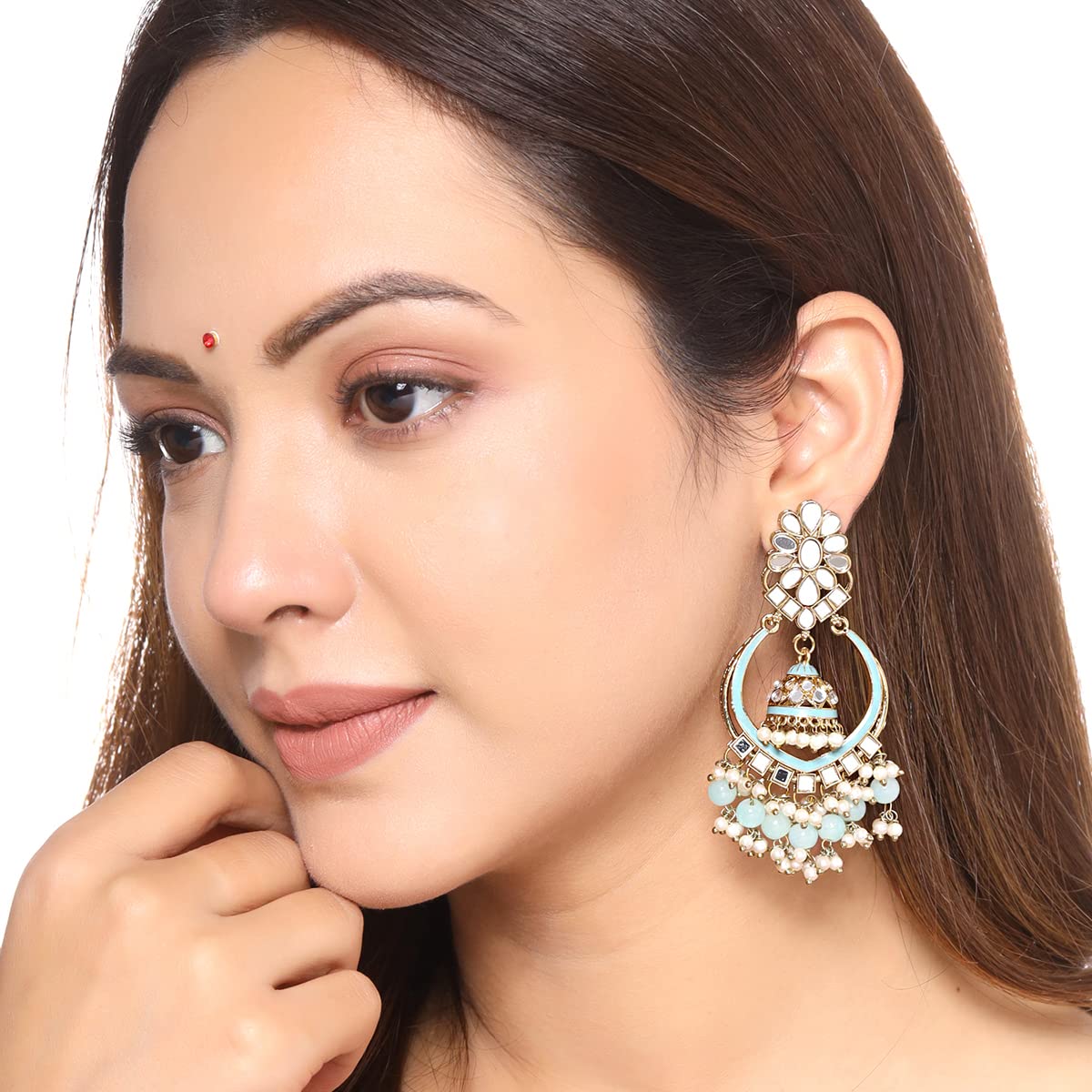 Yellow Chimes Earrings for Women and Girls Traditional Blue Meenakari Chandbali | Gold Plated Chand Baliyan Jhumka Earrings | Birthday Gift for girls and women Anniversary Gift for Wife