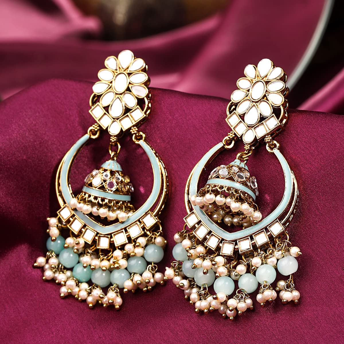 Earrings for Women and Girls Traditional Blue Meenakari Chandbali | Gold Plated Chand Baliyan Jhumka Earrings | Birthday Gift for girls and women Anniversary Gift for Wife