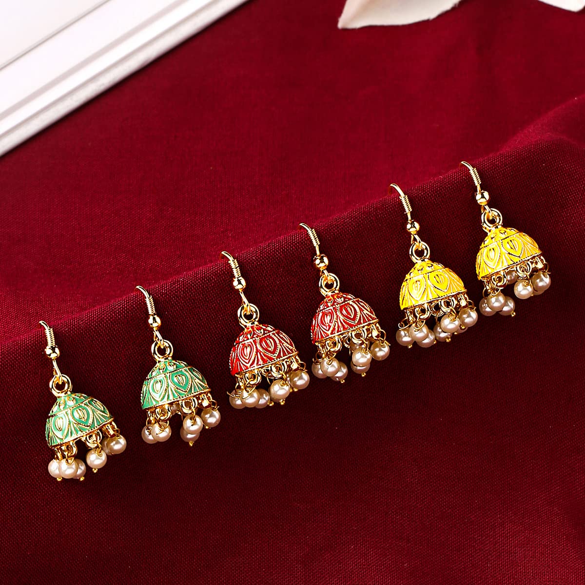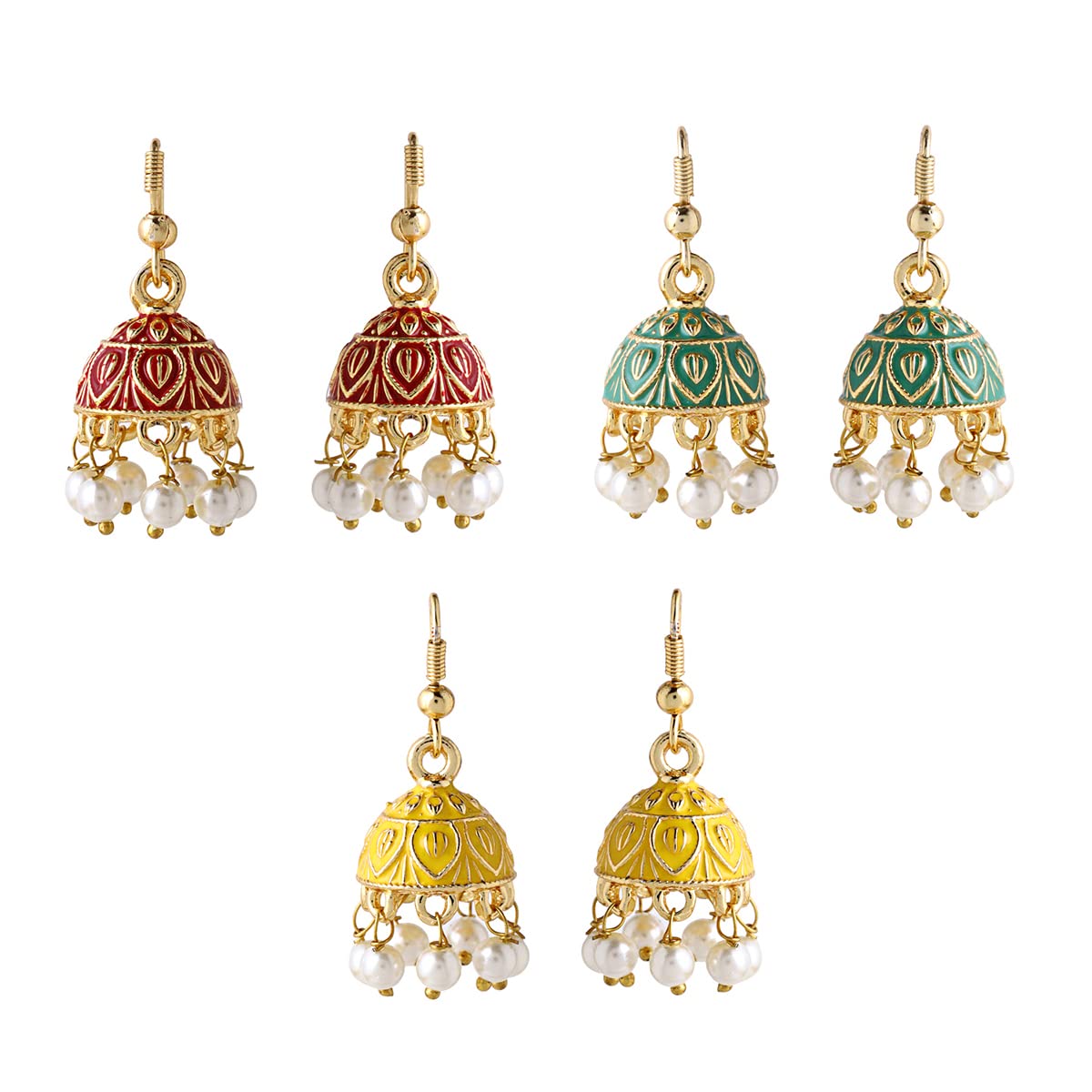Yellow Chimes Earrings for Women and Girls Traditional Multicolor Meenakari Jhumka | Gold Plated Combo of 3 Pairs Jhumki Earrings | Birthday Gift for girls and women Anniversary Gift for Wife This Gold Plated Multicolor 3 Pairs of Combo of Meenakari Jhumka Earrings comes with a unique design that suits any of your outfit. Our Product is perfect for valentines Anniversary Birthday gift for Women,girlfriend,Wife. Earrings Length - 3 CM, Width - 1.5 CM. Weight -5.58 GM Wipe with Soft Cloth after every use. Keep away from Water, sprays or perfumes. Try to store your jewellery in a flat box to avoid accidental scratches. Harsh Usage or scratching, Avoid Harsh Chemicals. Wipe with soft cloth in case of dust accumulation. Packaging- Your favorite piece of Jewellery will reach you in an Elegant Yellow Chimes box with safety and precautions. You can leave it to us the job of delivering your Jewellery in original condition to you at your door-step. Brand Vision - Yellow Chimes is the one stop solution for all jewellery lovers- which is affordable and can fit for any occasion you pick to shape your own style and personality.
