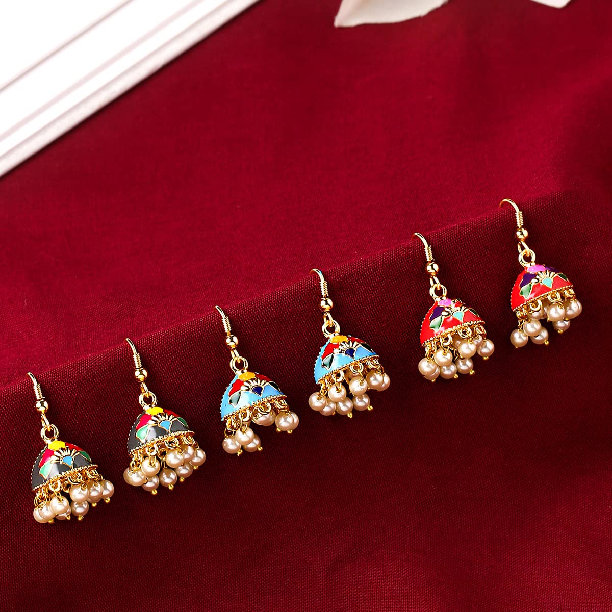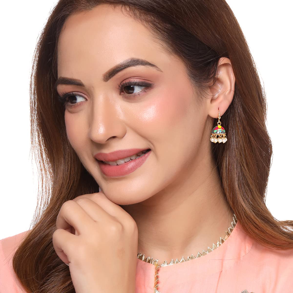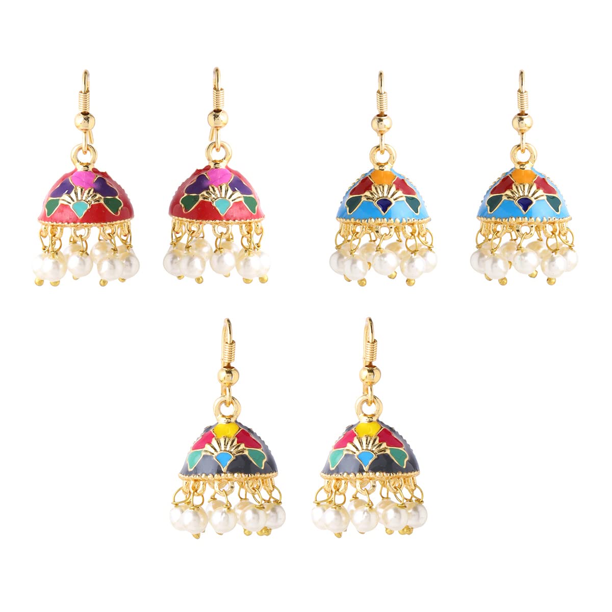 - This Gold Plated Multicolor 3 Pairs of Combo of Meenakari Jhumka Earrings comes with a unique design that suits any of your outfit. Our Product is perfect for valentines Anniversary Birthday gift for Women,girlfriend,Wife.